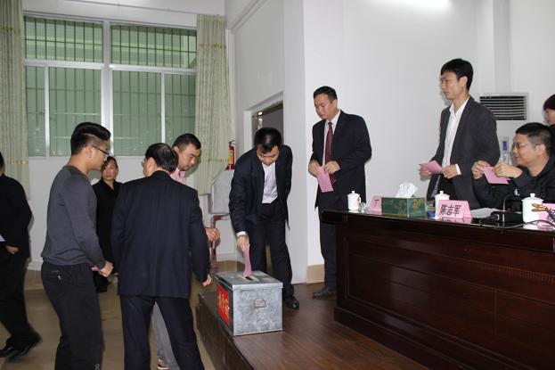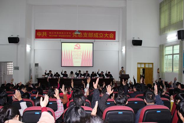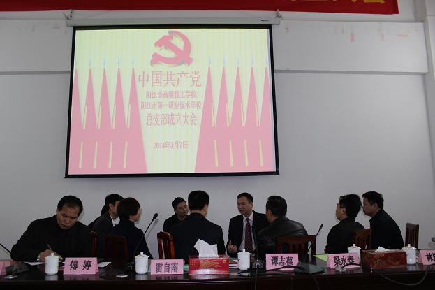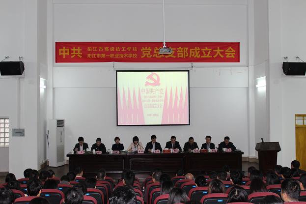 大会在雄壮的国歌声中拉开帷幕。按照《中国共产党章程》、《中国共产党基层组织选举工作暂行条例》的有关规定,首先,市人社局党委办公室副主任傅婷宣读了局党委《关于同意成立阳江市高级技工学校、阳江市第一职业技术学校总支部委员会的批复》、《关于中共阳江市高级技工学校、阳江市第一职业技术学校总支部委员会候选人预备人选的批复》,同意撤销中共阳江市高级技工学校总支部委员会,成立中共阳江市高级技工学校、阳江市第一职业技术学校总支部委员会,下设机关一党支部、机关二党支部、机电工程党支部、商务贸易党支部、旅游服务党支部、信息技术党支部、基础教育党支部、高级班管理党支部、幼儿园党支部、离退休党支部共十个党支部;接着大会审议通过了学校总支部委员会委员选举办法和计票人、监票人名单。在总监票人谢代华主持下,全体党员对9名委员候选人进行了投票选举,谭志葆、雷自南、梁永春、杨丽萍、林跃飞、陈志军、洪海、丁英、林进杰9位同志最终当选为学校党总支部委员会委员。在随后召开的学校党总支部委员会第一次会议上,谭志葆同志当选为学校党总支部书记,雷自南同志当选为学校党总支部副书记。