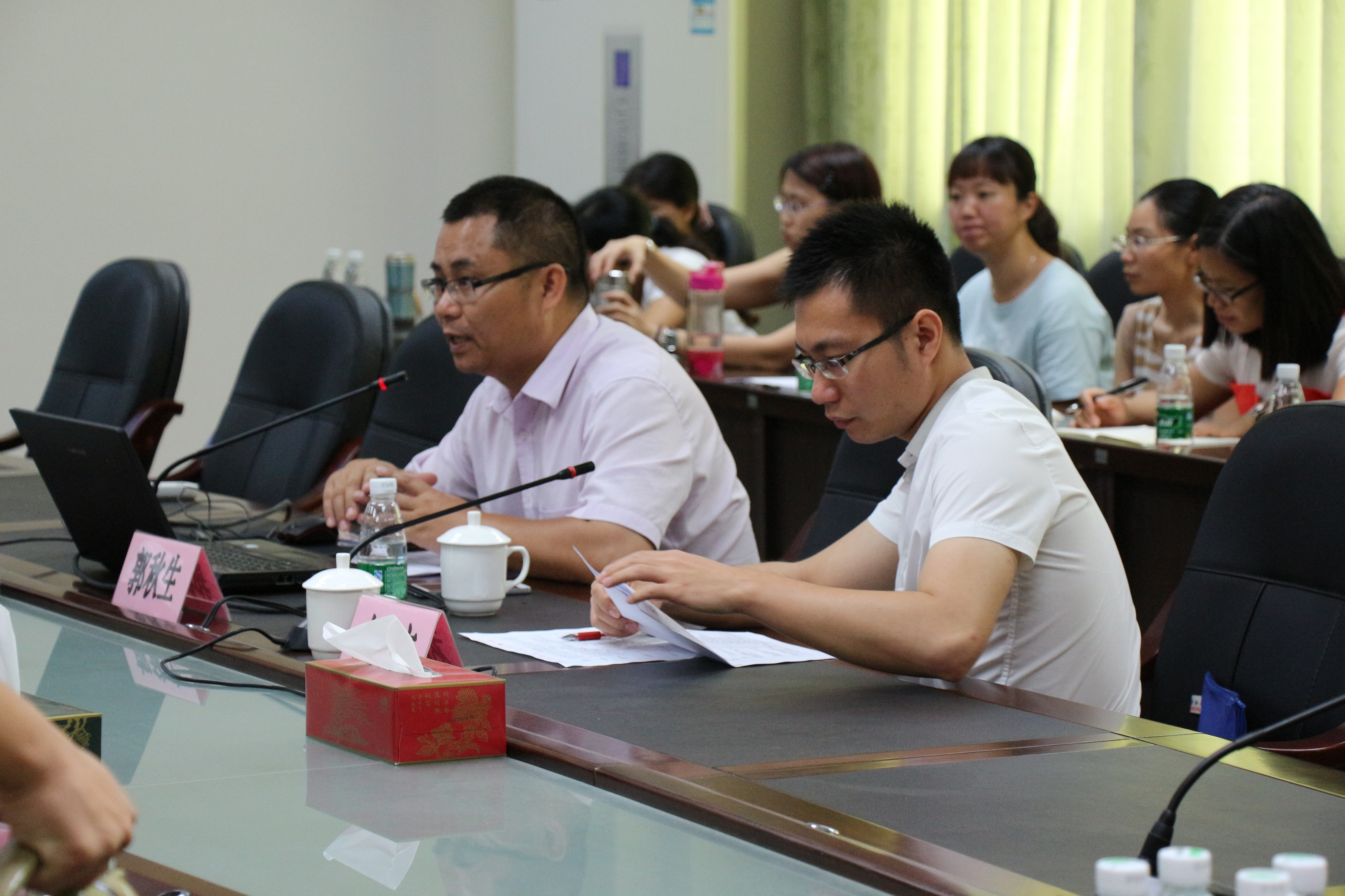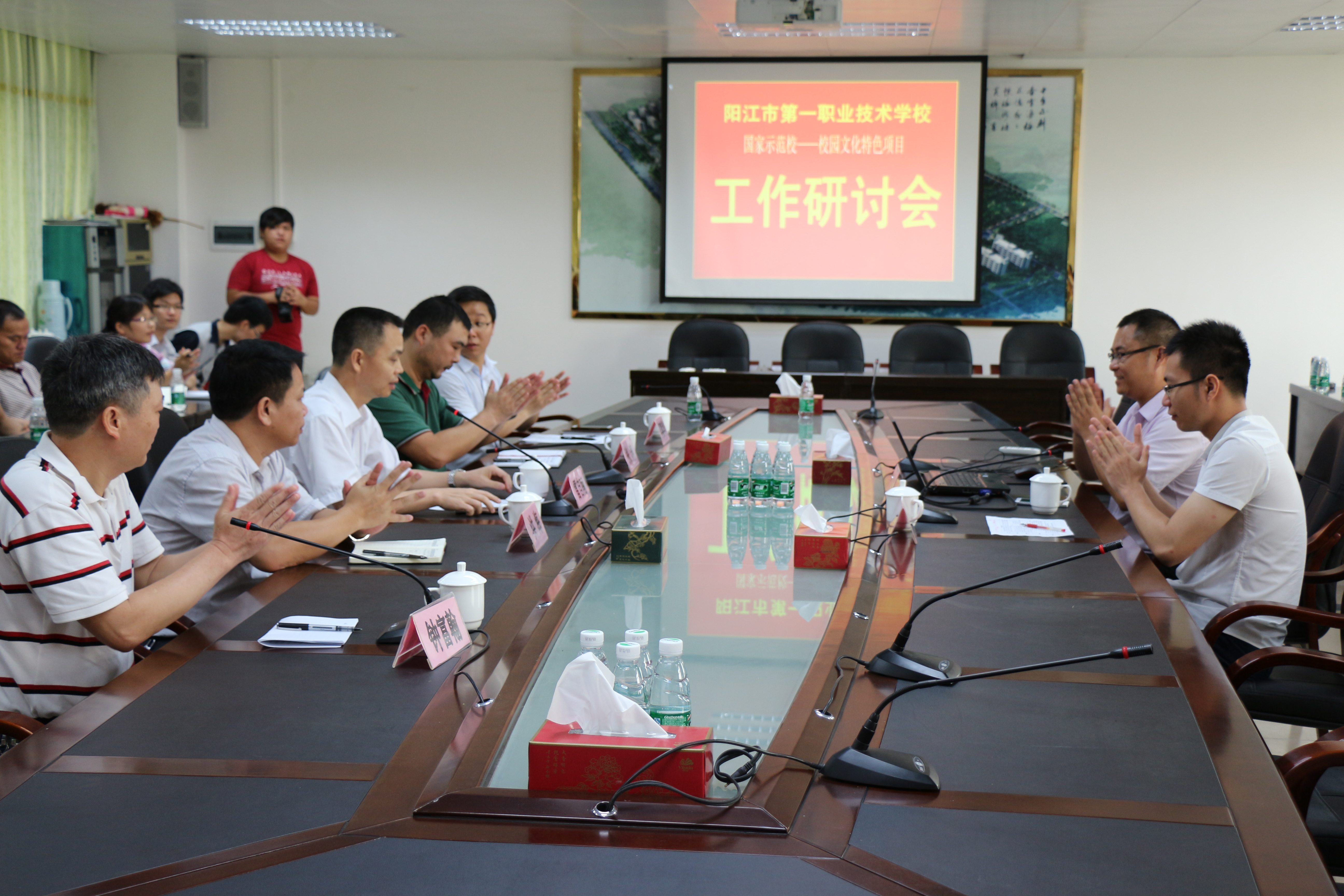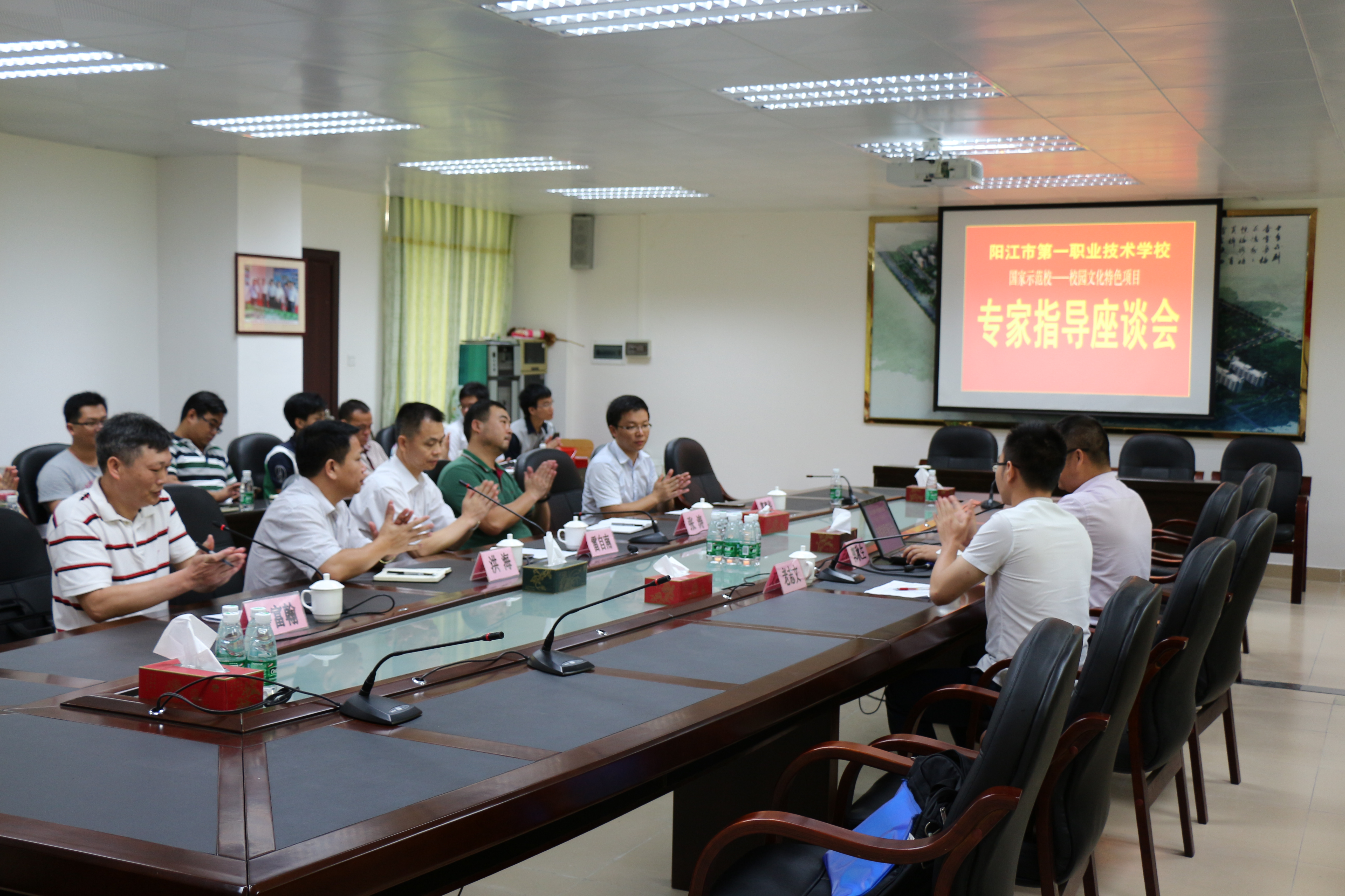 首先,雷校长代表学校对来我校开展指导工作的两位老师表示热烈的欢迎和衷心的感谢,雷校长希望全体德育干部们要虚心学习专家们的经验,努力用到自己的实际工作中去。洪副校长介绍了我校创建国家示范校校园文化项目的建设情况,并提出了一些问题供大家交流。