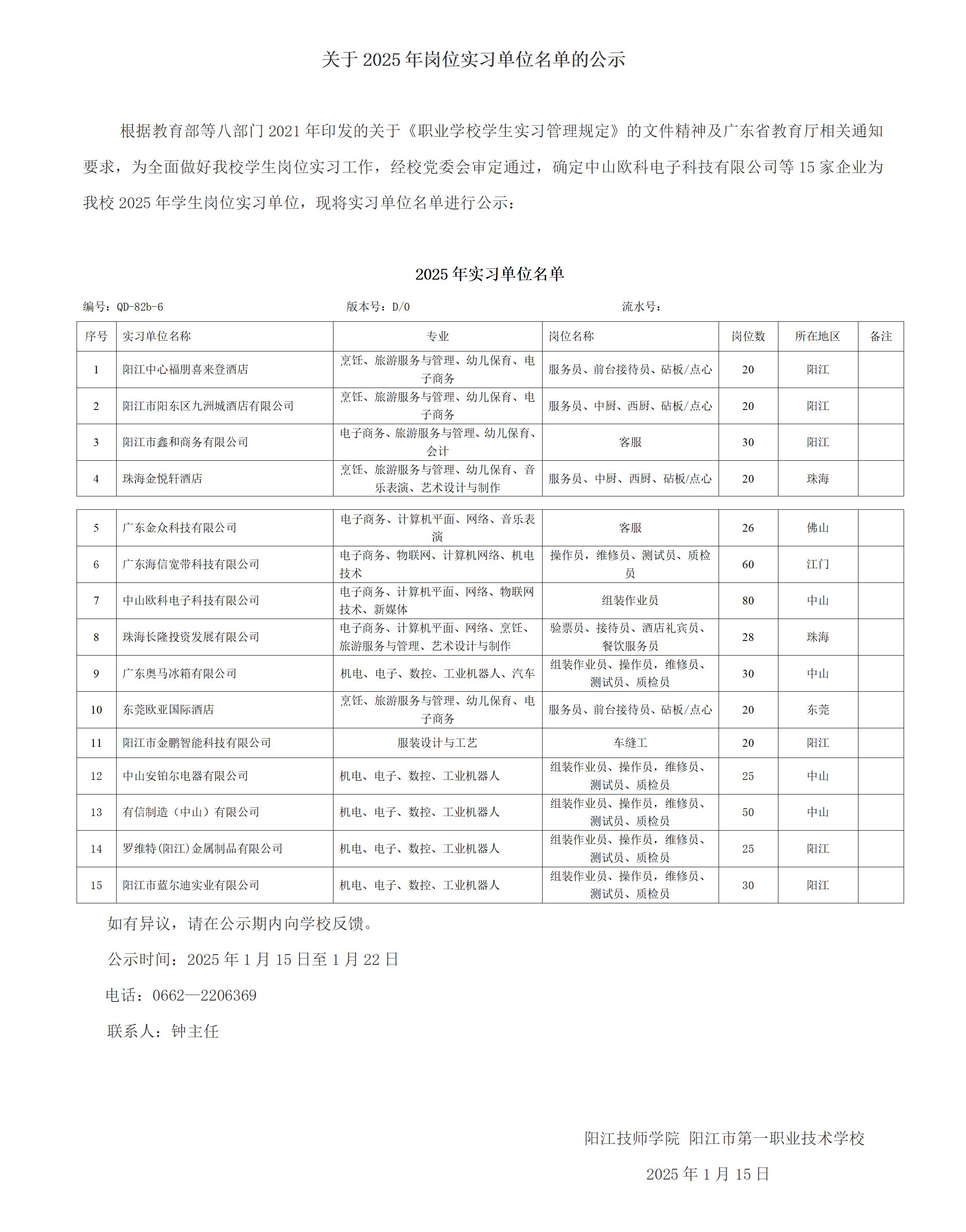 阳江技师学院、阳江市第一职业技术学校建立第三方服务单位库公告