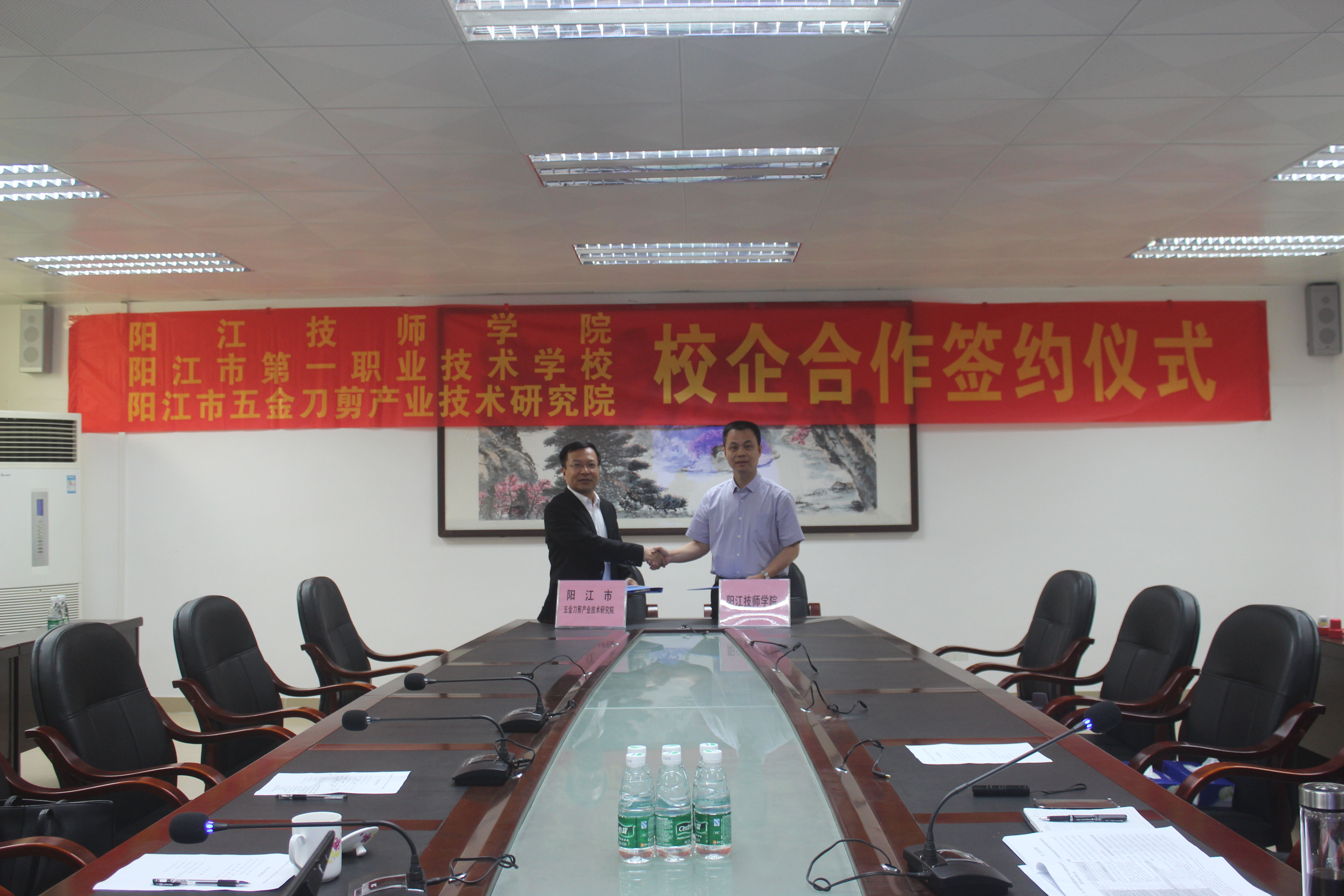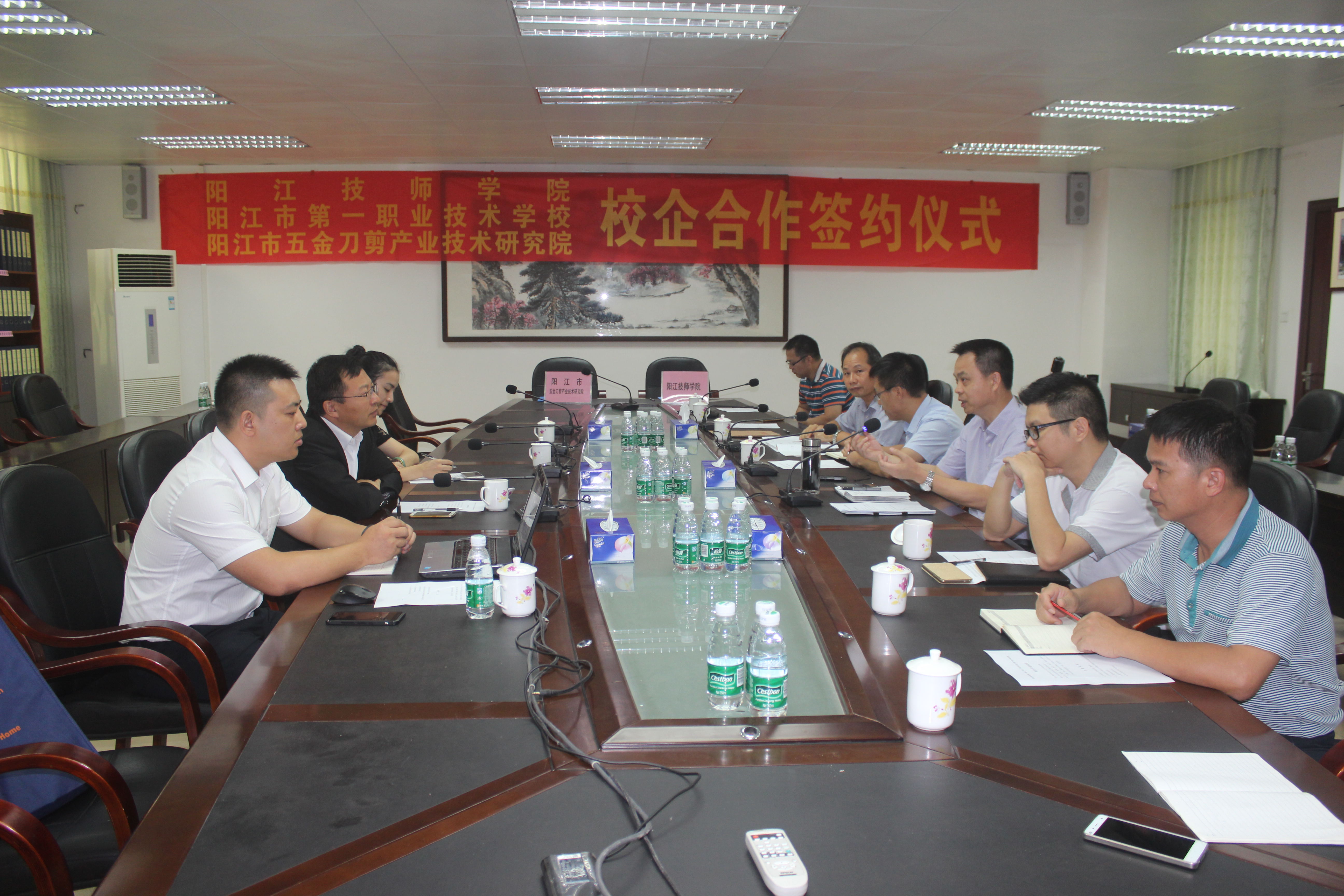 8月17日,我校与阳江市五金刀剪产业技术研究院签订共建战略合作框架协议,校长雷自南、校党总支书记谭志葆、副校长陈志军,阳江市五金刀剪产业技术研究院院长张瑞华教授、院长助理刘燕红博士、工程师华炳钟博士出席仪式。
