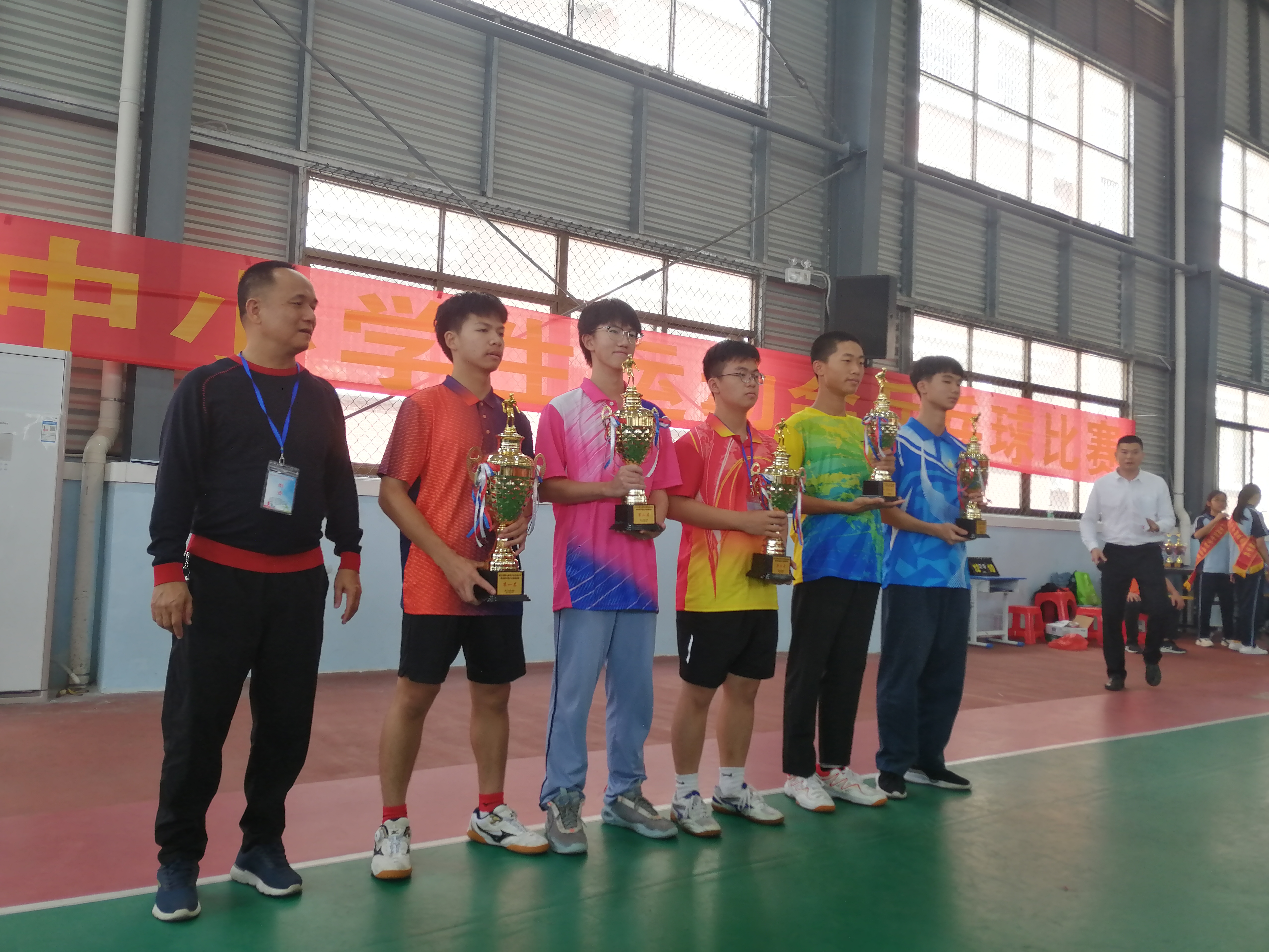 在乒乓球比赛中,我校运动员获得男子团体第四名,周政坤获男单第三名。