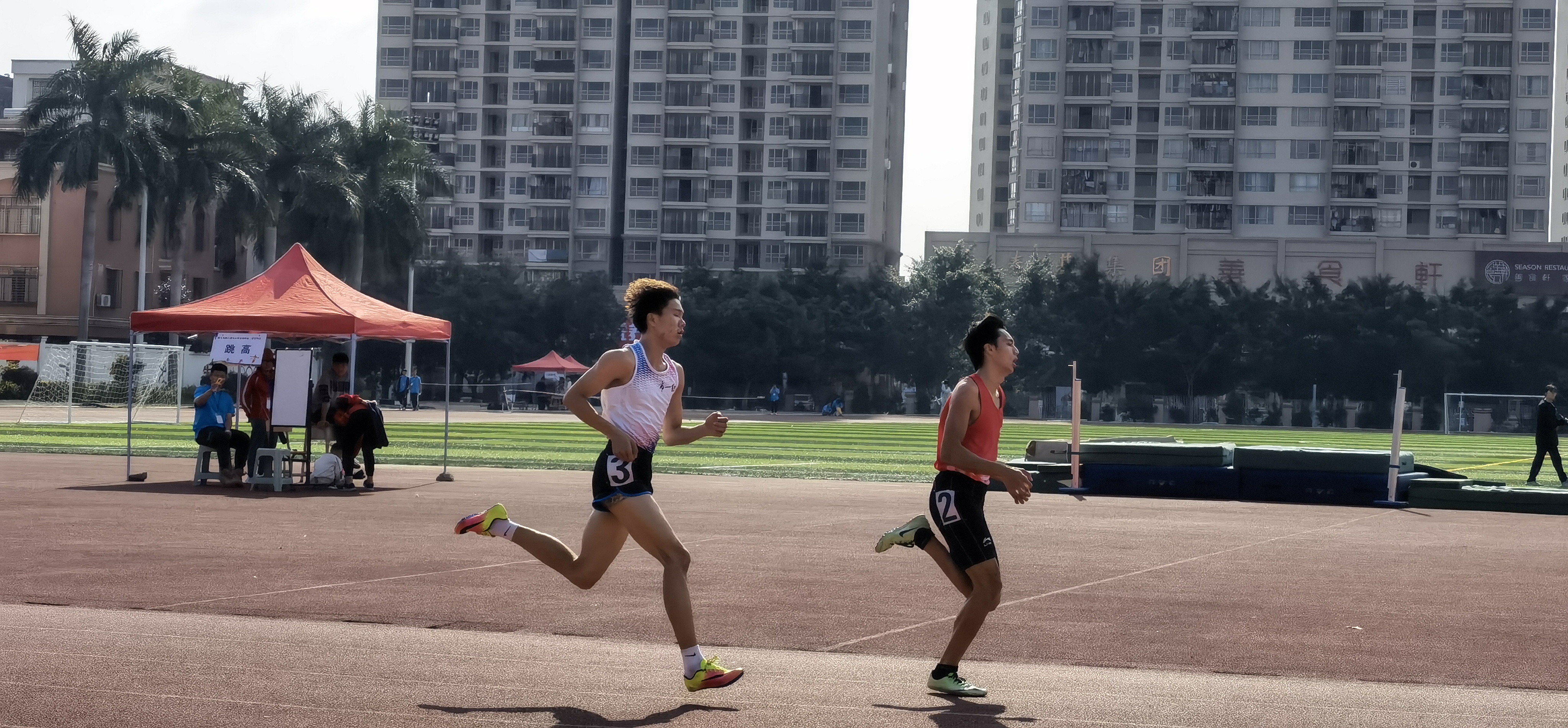 在田径比赛中,我校运动员获得15个单项奖、2个团体奖和高中组团体总分第六名,斩获3银3铜,其中卢仕好获女子400米跨栏第二名,林雨飞获女子标枪第二名,吴炫希获男子1500米第二名、男子800米第三名,黄汝欣获女子1500米第三名,何怡华获男子五项全能第三名。