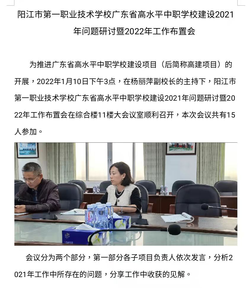 阳江市一职广东省高水平中职建设2021年问题研讨暨2022年工作布置会