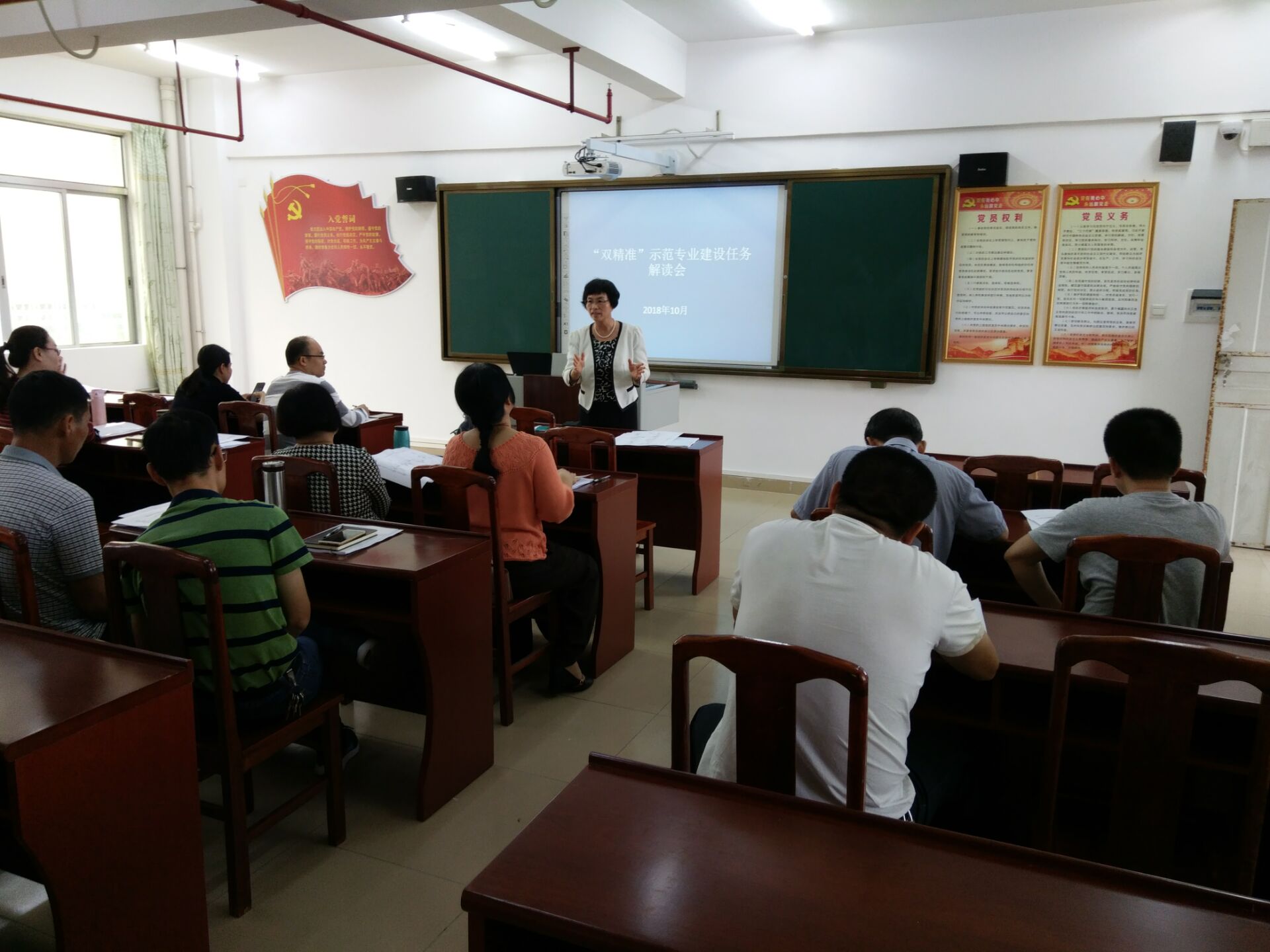 2018年10月26日上午9点,由我校杨丽萍副校长组织召开“双精准”示范专业建设部署工作会议,会议确定成立“双精准”示范专业建设办公室和人员工作职责分工。