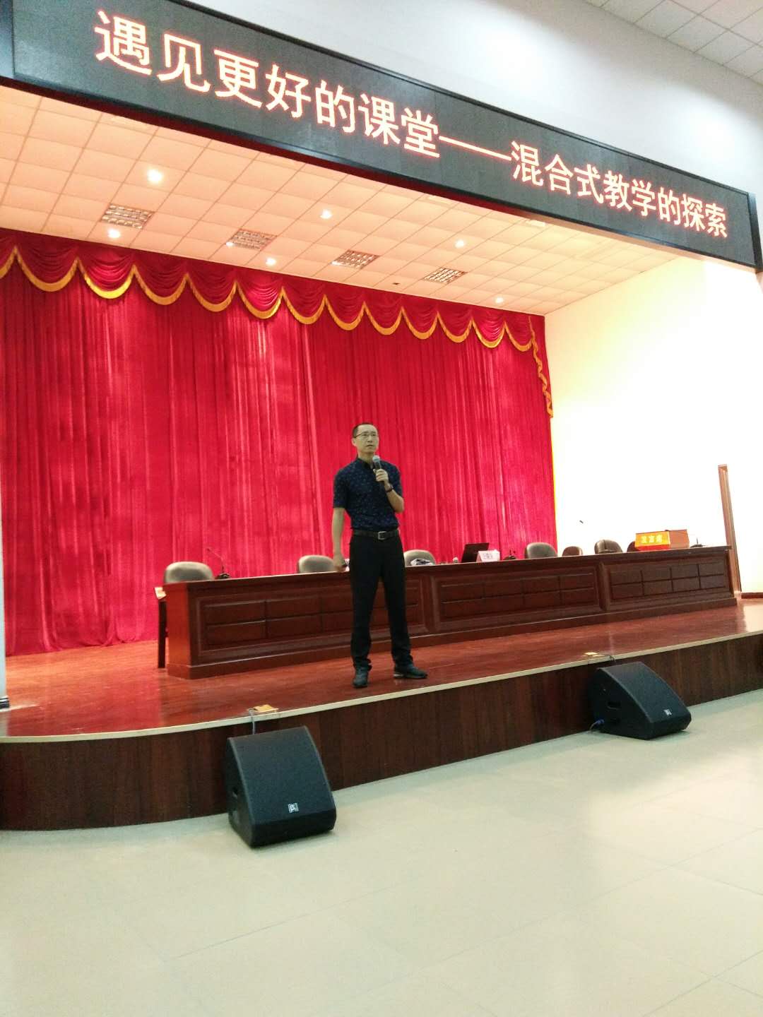 为推进信息技术在教育教学中的广泛应用,创新教育教学模式,进一步提高教学质量,2019年4月29日,我校邀请到了华南师范大学汪晓东博士到我校开展“遇见更好的课堂-混合式教学实践探索”专题讲座,学校领导和教师听取讲座。讲座中,汪晓东博士为教师们讲解了混合式教学的发展历程,从什么是混合式教学,翻转课堂与讲授课堂学习流程对比、教师和学生在混合式教学中的地位,混合式教学的未来,职业教育需要混合式教学,介绍了混合式教学的优势和特点。汪晓东博士还结合大量在中高职实施混合式教学的案例为老师讲解了“翻转课堂”实践中出现的困惑该如何应对。汪晓东博士语言睿智幽默,结合自身经历和大量混合式教学案例,直面教育现状,内容实用接地气,多次与教师进行互动交流,解决了教师提出的问题,让教师在轻松愉悦的氛围中加深了对混合式教学的了解,受到与会教师的好评。我校杨丽萍副校长对本次讲座作了总结并提出我们要充分利有混合式教学,有效提高我校培养学生操作能力,提升有效的教学实践,解决教学中的一些难点,并希望有更多的老师加入到混合式教学的实践和教学中来,为学生呈现出更好的课堂。讲座讲完后汪晓东博士对我校参加教师技能大赛的老师进行了教学能力大赛实战技巧的技能培训。