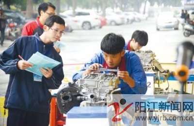 本报讯(记者/刘云鹏 通讯员/冯兵)“启动发动机!左前灯正常,右前灯正常,大前灯正常……”伴随着指挥口令,选手有条不紊地进行着汽车二级维护团体项目比赛。昨日,2014年市中职学校技能大赛正式拉开帷幕,来自全市6所中职学校的477名选手参加财经商贸、加工制造、交通运输等9个专业类别共41个项目的竞赛。 昨日上午9时,记者来到本次技能大赛唯一一个企业比赛点——汽车类技能竞赛阳东一职(联创)赛区,15名来自阳东一职和阳春中职的选手将在此进行《汽车维修基本技能》和《二级维护》两个项目的同台角逐。记者在现场看到,赛前所有选手须抽签随机分组,按组别依次比赛,其中《二级维护》为团体项目,共5组10人,个人项目《汽车维修基本技能》为5组5人。比赛评委由参赛学校老师和企业方共同组成,在比赛评分表上记者发现,两个比赛项目的评分细则均为14条,包括检查、作业流程、互相配合、时间、工单填写等几大项,满分为100分。 市教育局高中科相关负责人介绍,本次大赛共分阳春中职、阳东一职、阳江卫校、阳江一职4个赛区,其中阳春中职、阳东一职于当日上午开赛,阳江卫校下午开赛,阳江一职则计划29、30日比赛。本次活动由市教育局主办,旨在进一步加强我市中职学生动手能力,选拔优秀选手参加省技能大赛。在省技能大赛中获得一等奖可免试读高职学校,相关比赛结果将于元旦后公布。