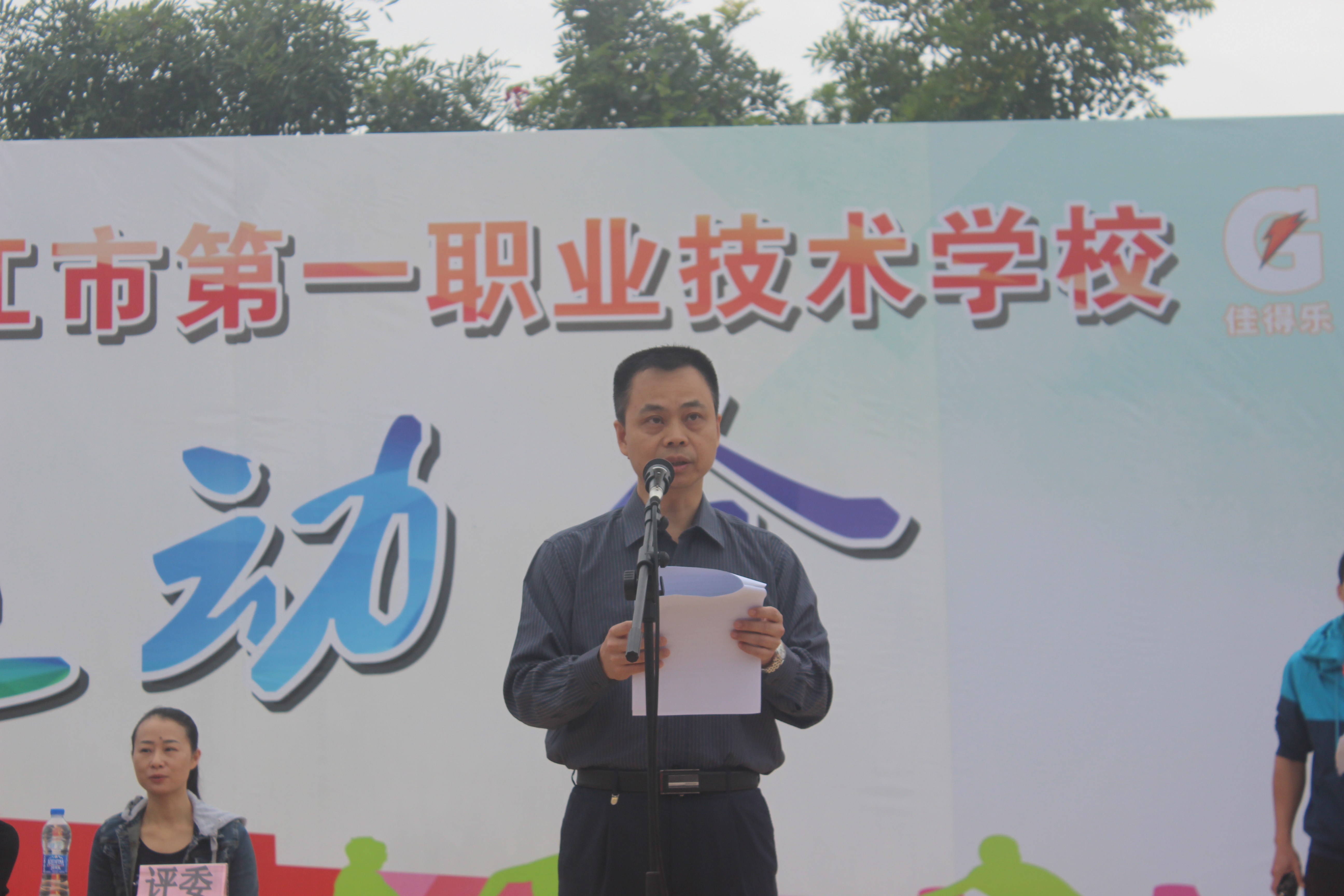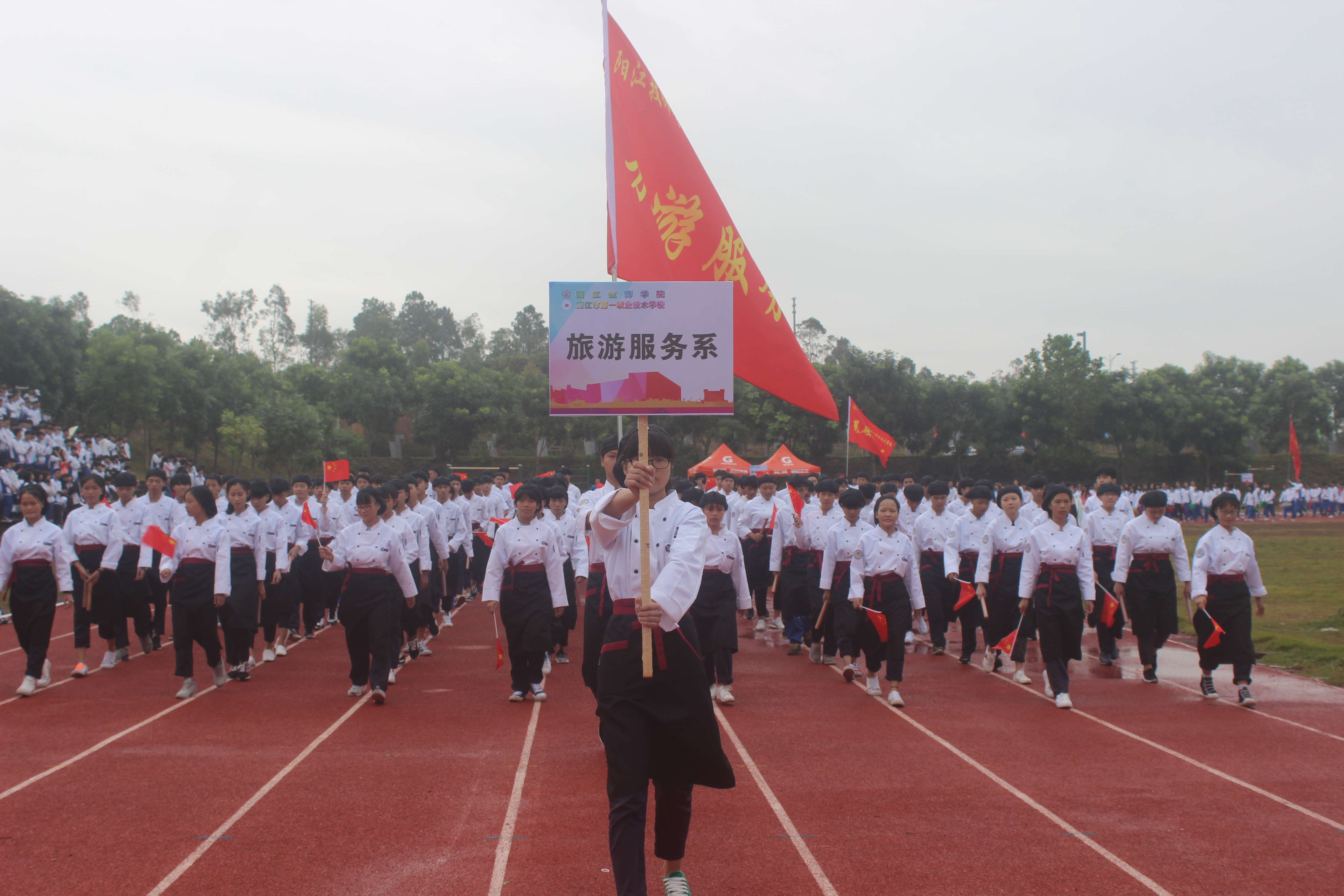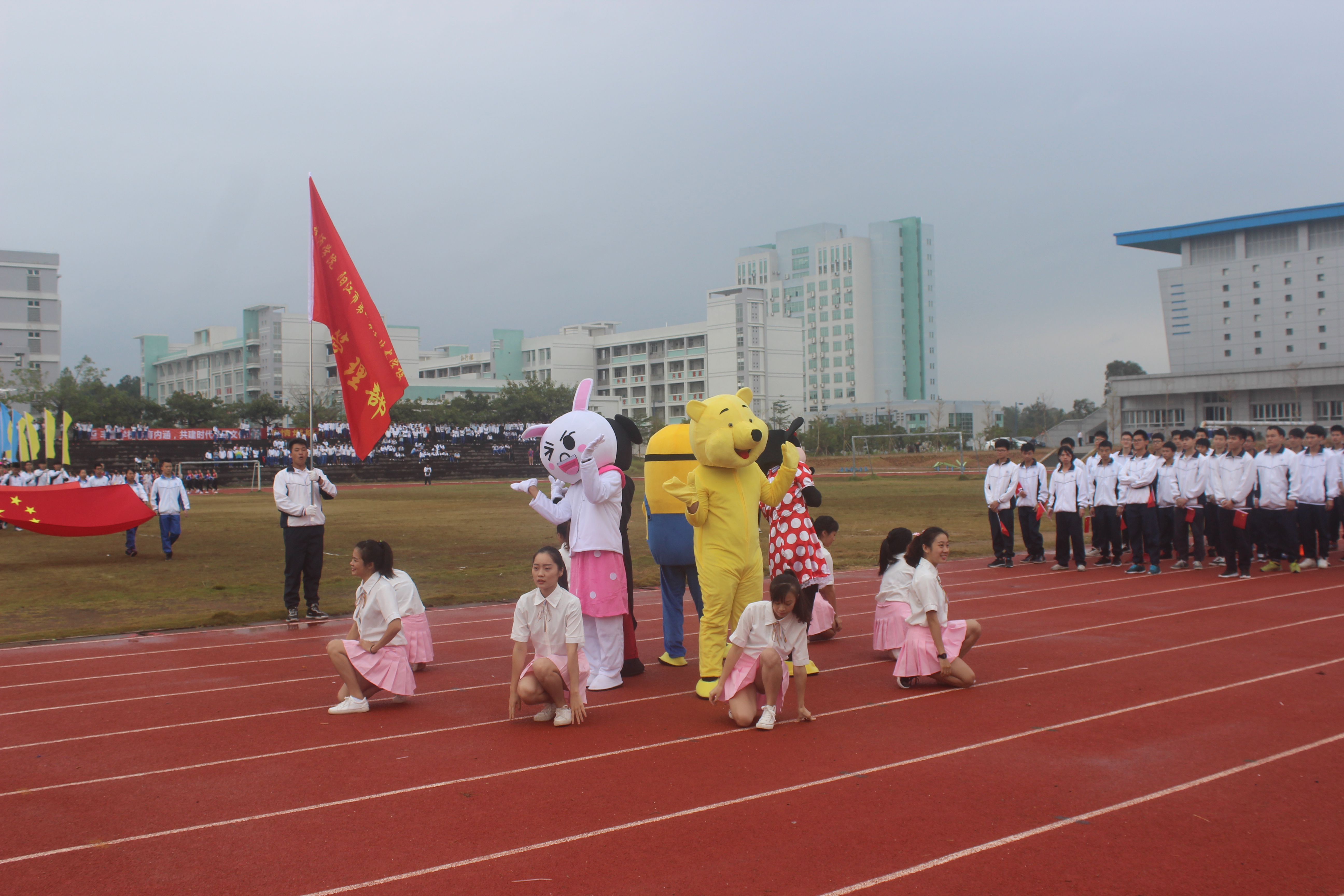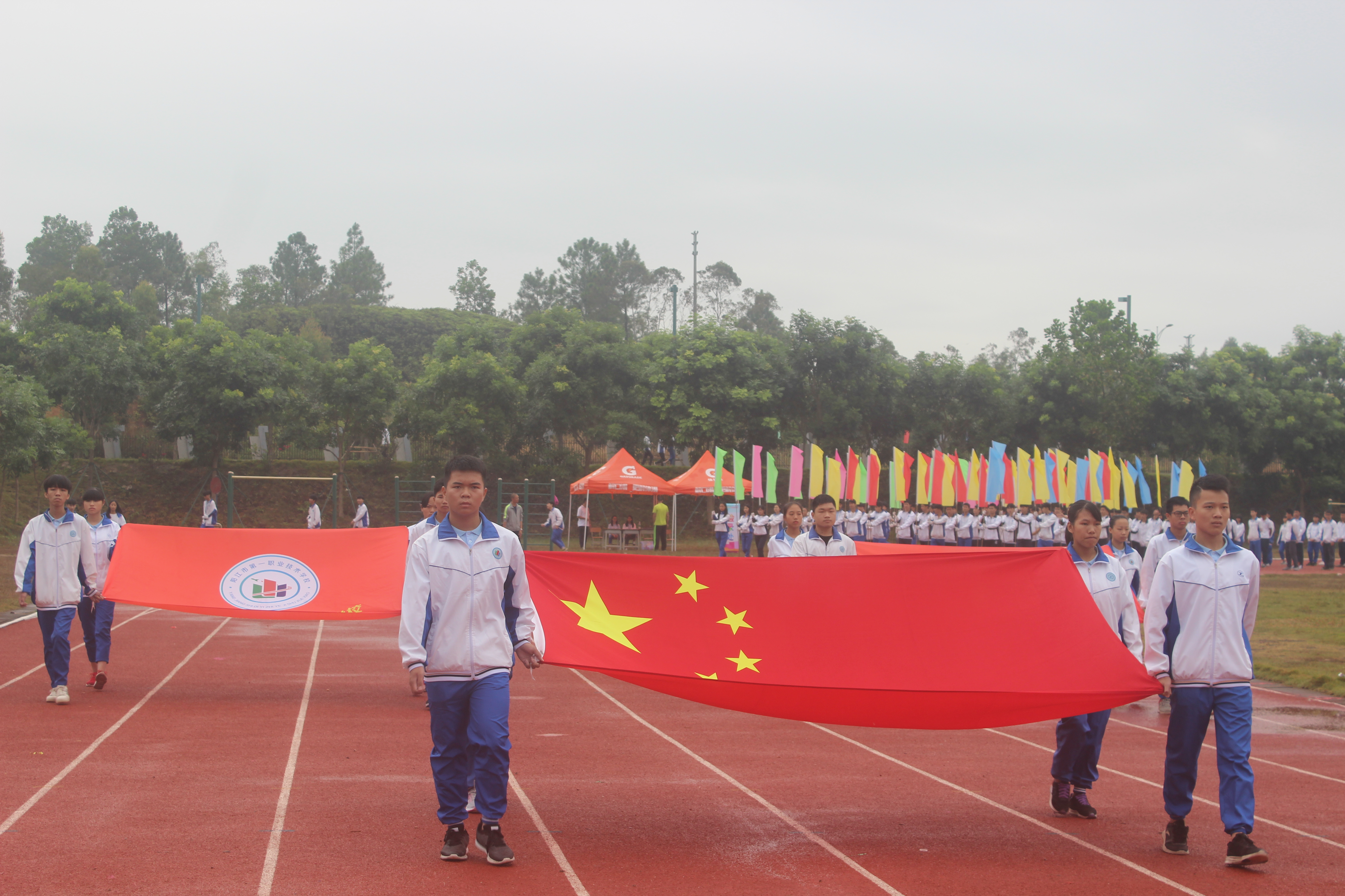 11月8日上午,我校2017年田径运动会开幕式在学校运动场隆重举行,雷自南院长、谭志葆书记等校领导、各系部负责人、裁判员在主席台就坐,全校师生出席开幕式,仪式由陈志军副院长主持。