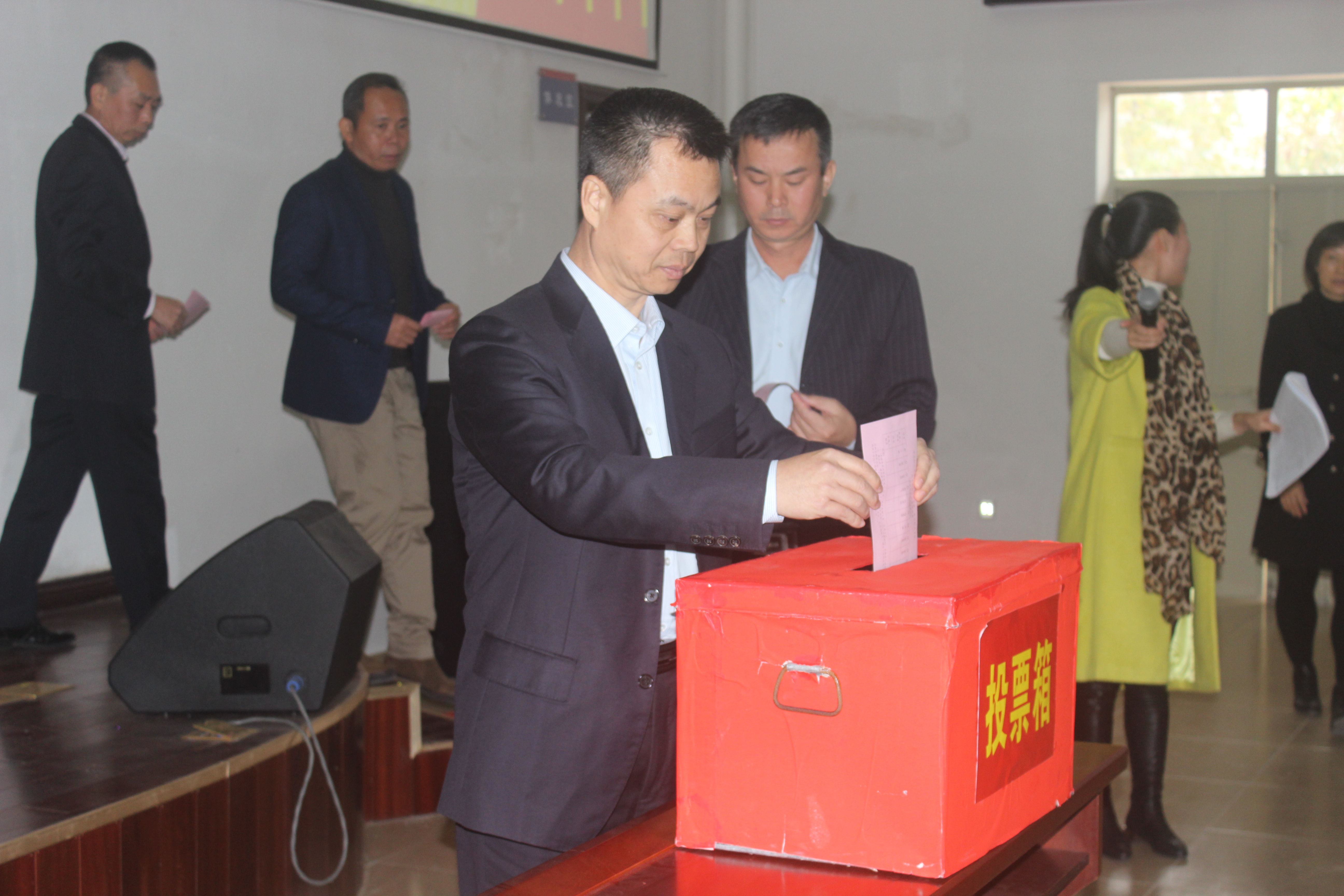 接着大会在充分发扬民主的基础上,严格按照党总支部换届选举程序,以无记名投票的方式和公开、公平、公正的差额选举和现场统计,选举产生了中共阳江技师学院、阳江市第一职业技术学校新一届总支部委员会。谭志葆、雷自南、梁永春、杨丽萍、林跃飞、陈志军、洪海、丁英、林进杰同志当选为党总支部新一届委员。新选举产生的总支部委员会随后召开了两校第二届总支部委员会第一次会议,谭志葆同志和雷自南同志分别当选新一届总支部委员会书记和副书记,并对各位委员的职责进行了分工。