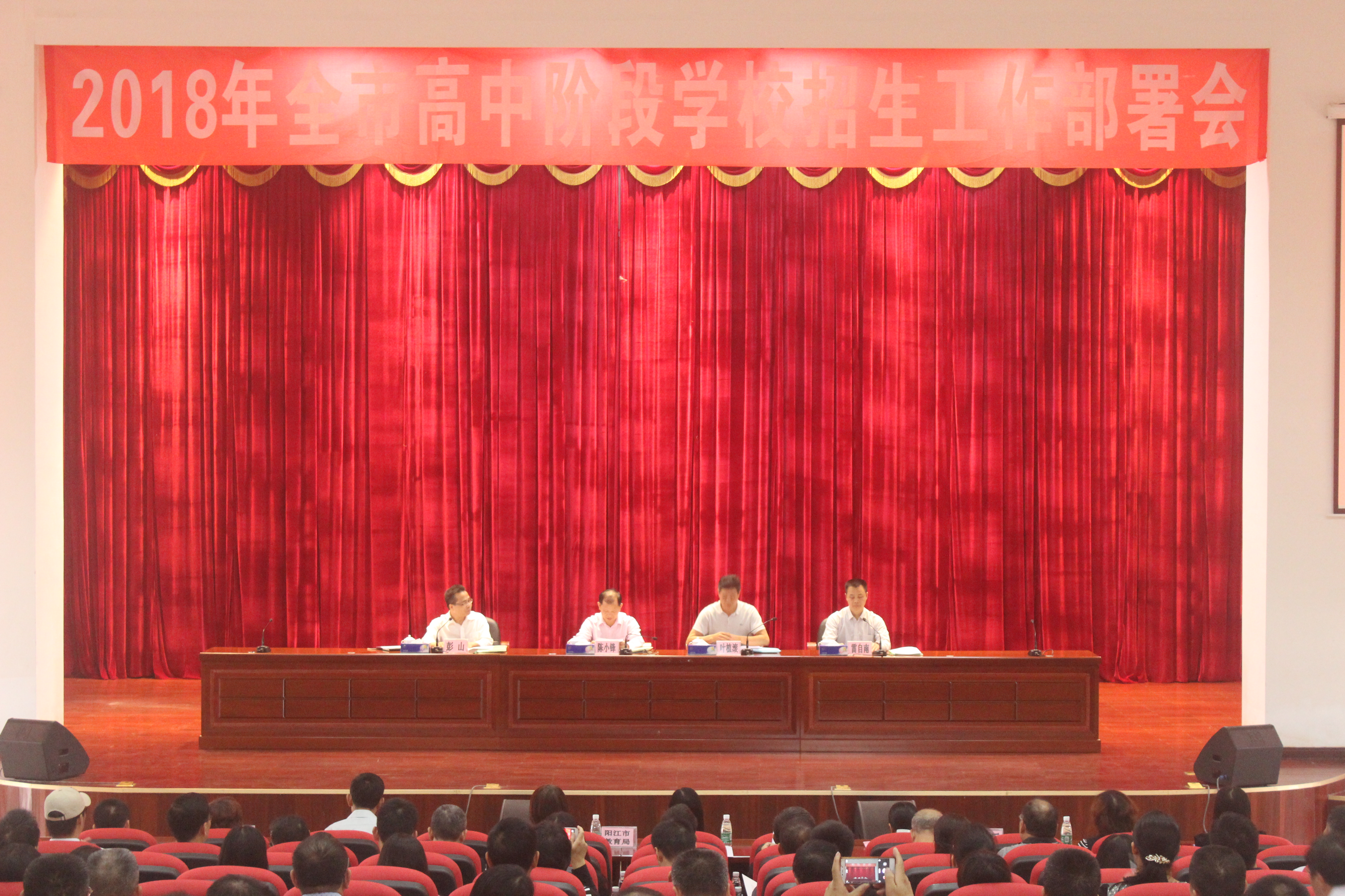 4月19日下午,全市高中阶段学校招生工作部署会在我校召开,市教育局局长陈小锋、副局长彭山,市人力资源和社会保障局副局长叶植滚及我校校长雷自南等领导出席会议。市各县(市、区)领导、各初高中学校班主任、教师共300多人参加了会议。