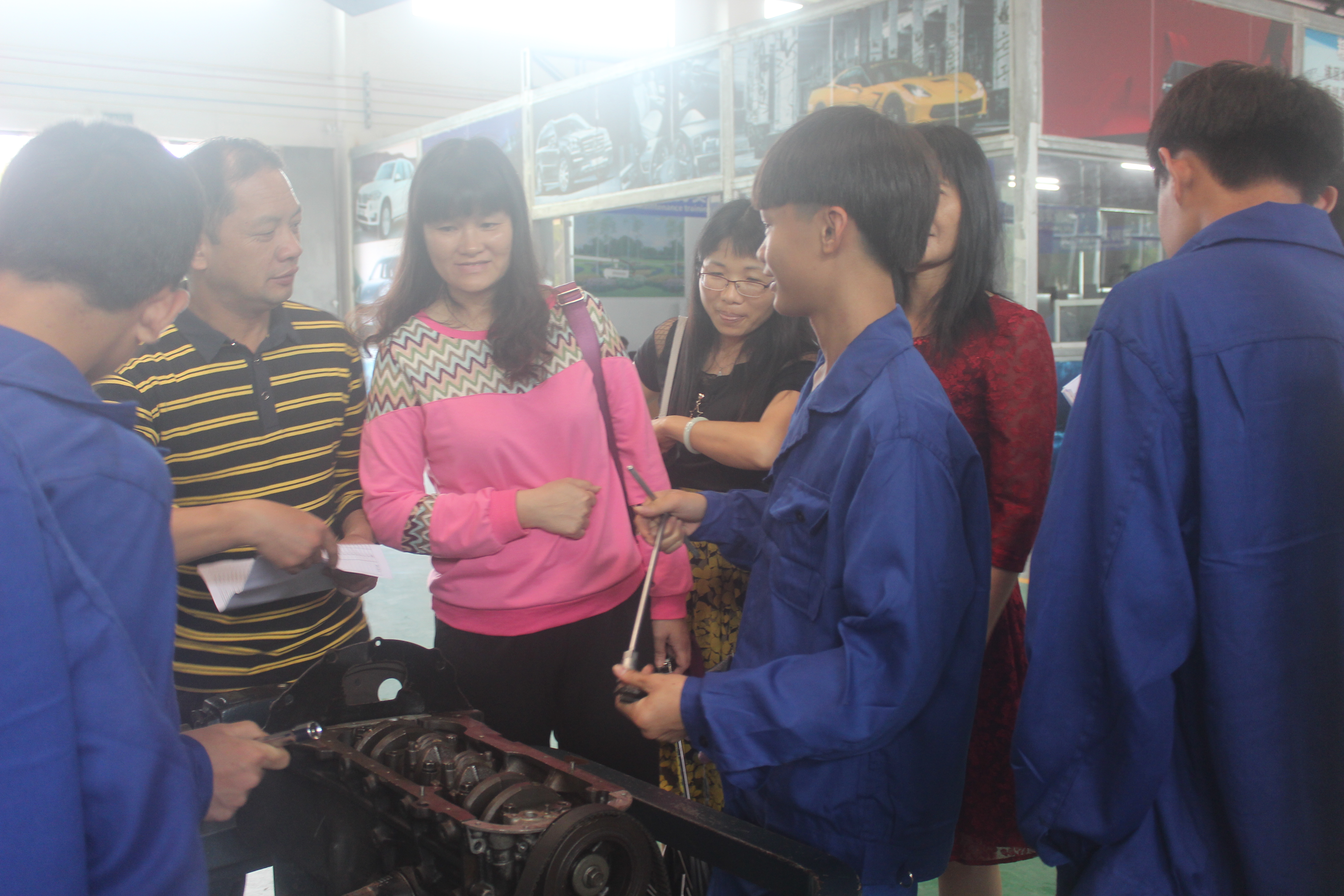 下午15:00,参加招生部署会的各县(市、区)领导、各初高中学校班主任、教师陆续到达会议现场签到,并随车参观我校的汽车维修实训车间、数控实训车间 、校企合作实训车间、影视实训室、广告设计实训室、大师工作室、旅游烹饪实训室、幼师实训基地等实训教学场所。