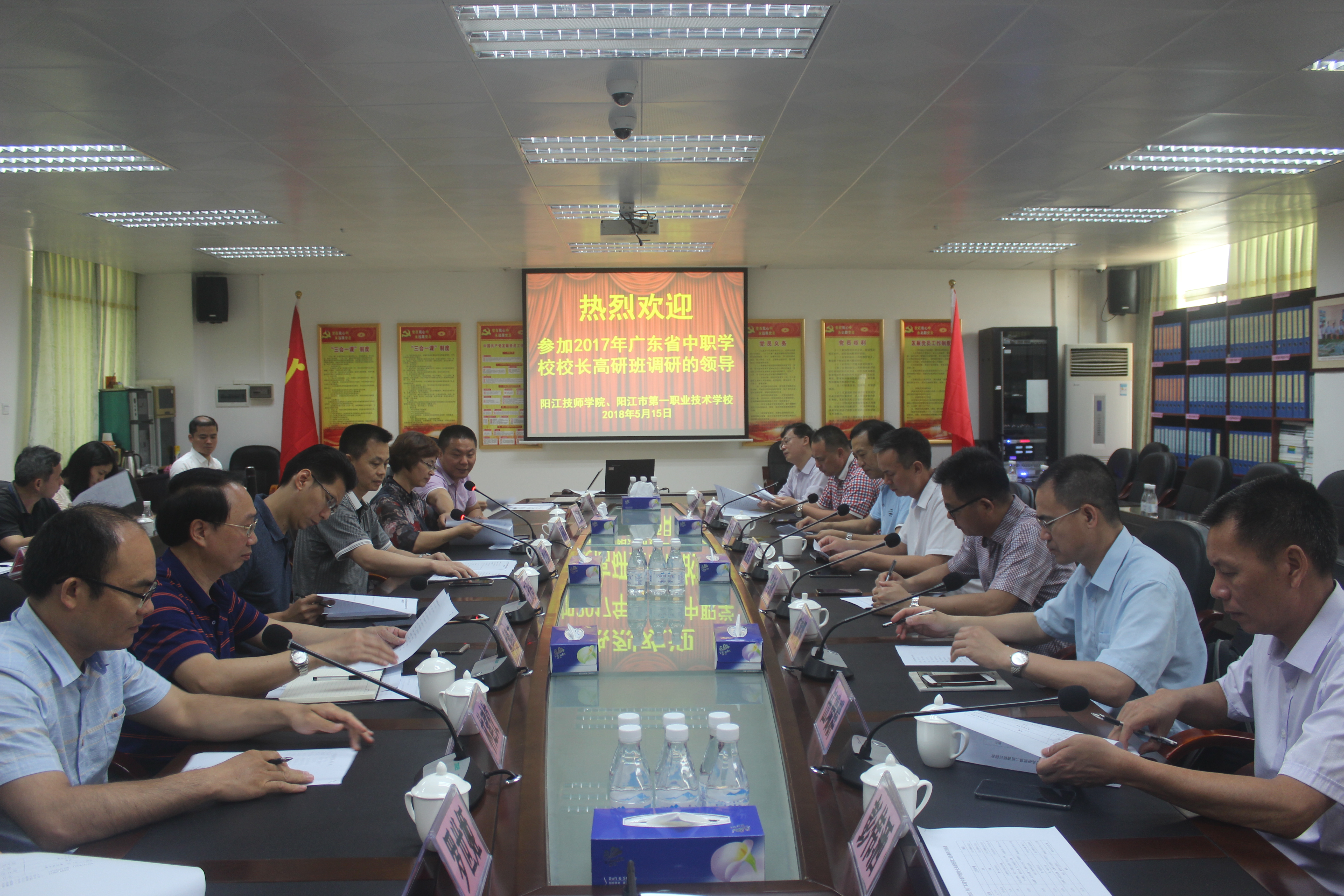 5月15日上午,2017年广东省中职学校校长高研班第二组到我校调研, 校党总支书记谭志葆引领调研组成员参观了我校的实训场、教学基地。校长雷自南向调研组成员汇报学校的办学情况。