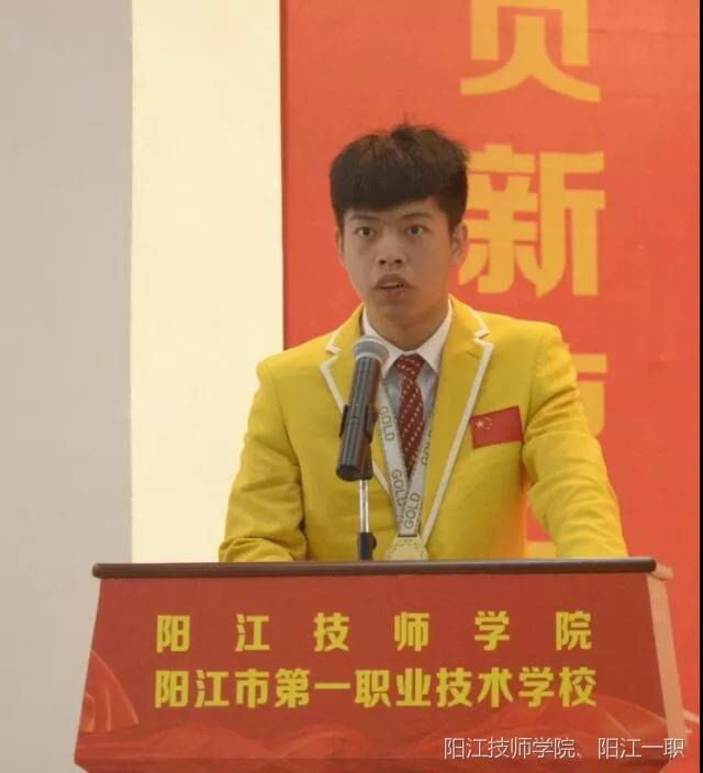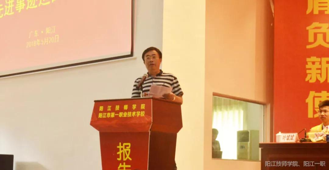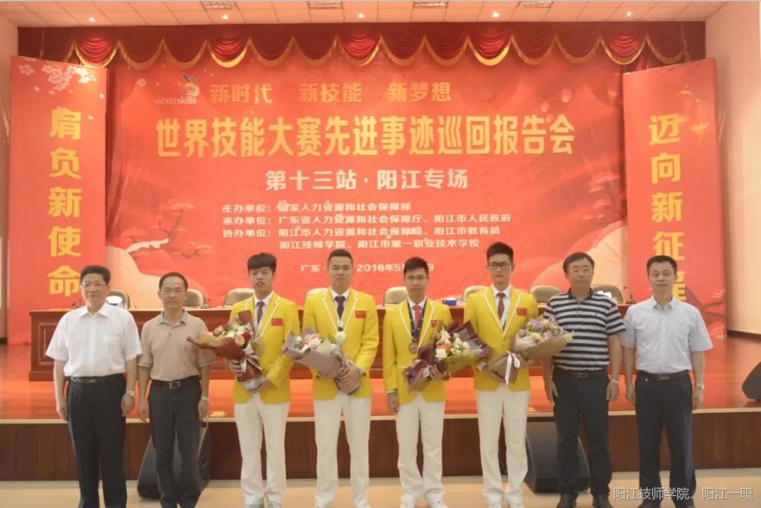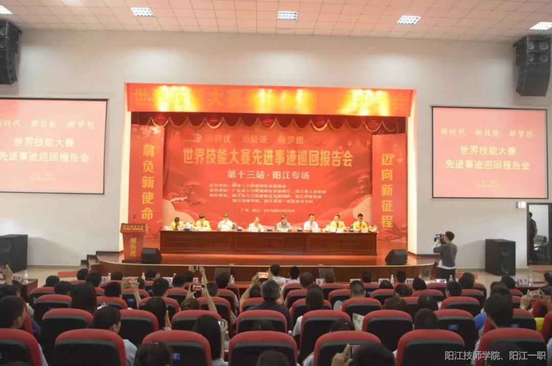 5月20日上午,由人力资源和社会保障部主办,广东省人力资源和社会保障厅、阳江市人民政府承办的世界技能大赛先进事迹巡回报告会在我校隆重举行。报告会以“新时代、新技能、新梦想”为主题,旨在充分发挥世界技能大赛对阳江市技能人才队伍建设的引领作用。省人社厅职业技术教研室陈苏武主任、阳江市人民政府伍世光副秘书长、阳江市人社局李冠基局长、阳江技师学院雷自南院长等领导出席报告会,来自市以及各县(区)的师生代表、企业代表共500余人聆听了报告会。