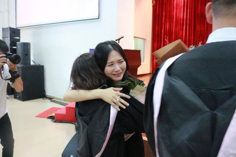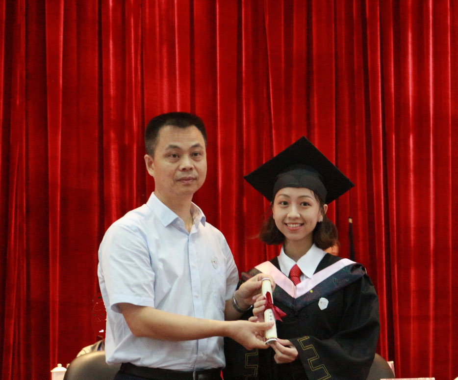 毕业典礼在雄壮的国歌声中拉开序幕。副洪海院长宣读了12名优秀毕业生表彰决定,随后,校领导为优秀毕业生代表颁奖并合影留念,背景音乐将典礼气氛推向了高潮。高级班毕业生代表16幼教1班柯海娜发言,总结在校期间所学知识,深切表达对学院领导、老师的感激之情和对同学、朋友的不舍之情,以及即将踏入社会的坚定信心。教师代表蔡梦贤发表致辞,表达了全体老师对学生的关心与殷切期望。典礼现场特设置了“优秀毕业生代表向家长献花”和“班代表向班主任献花”两大环节,其间观看了毕业留念视频,视频再现了同学们在学校学习生活的点点滴滴,记录了毕业生对母校、对学院、对老师的感恩与祝福。使现场不少师生都深受感动,接受鲜花的家长和老师有的流下了感动的泪水.随后,在现场师生、家长的见证下,雷自南院长和谭志葆书记亲自为高级班毕业生一一颁发了印有校训和毕业寄语的毕业卷轴,送上毕业的祝福。