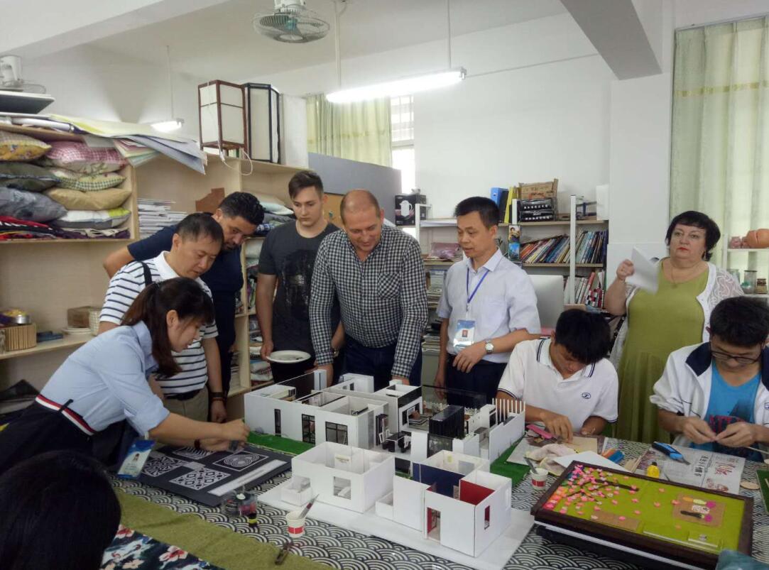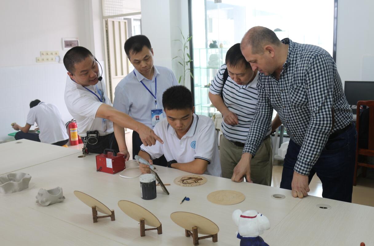 期间,别具特色的学生手工作品令考察团眼前一亮,当了解到漆艺作品制作周期长达三个月以上时,考察团成员不禁纷纷赞赏,学生的认真执着也让考察团的外宾们竖起大拇指!