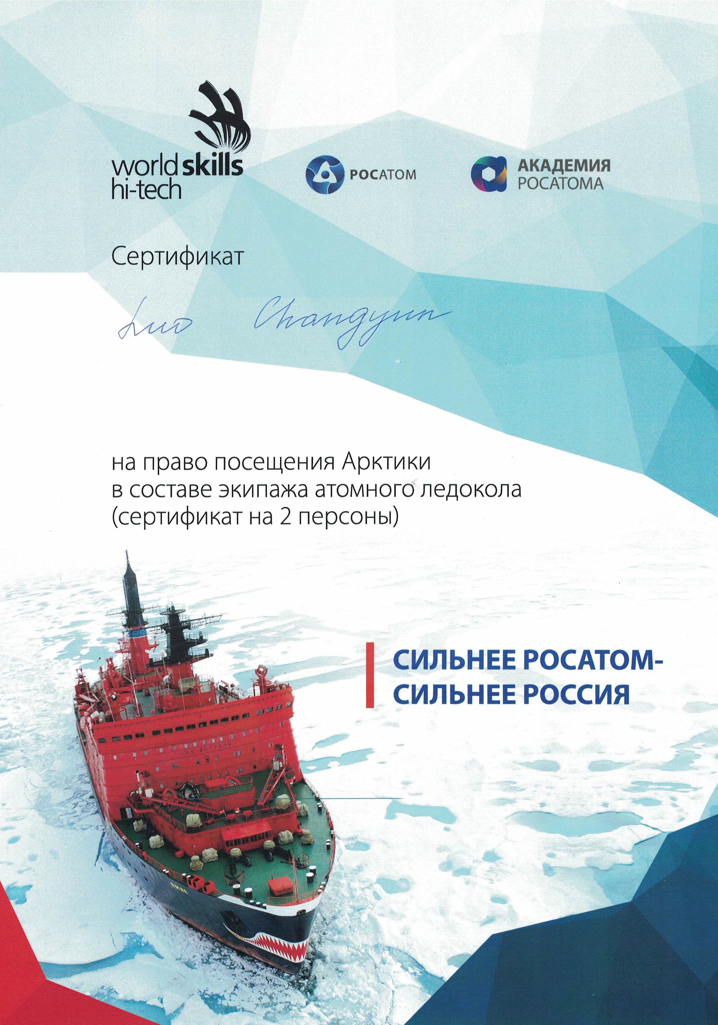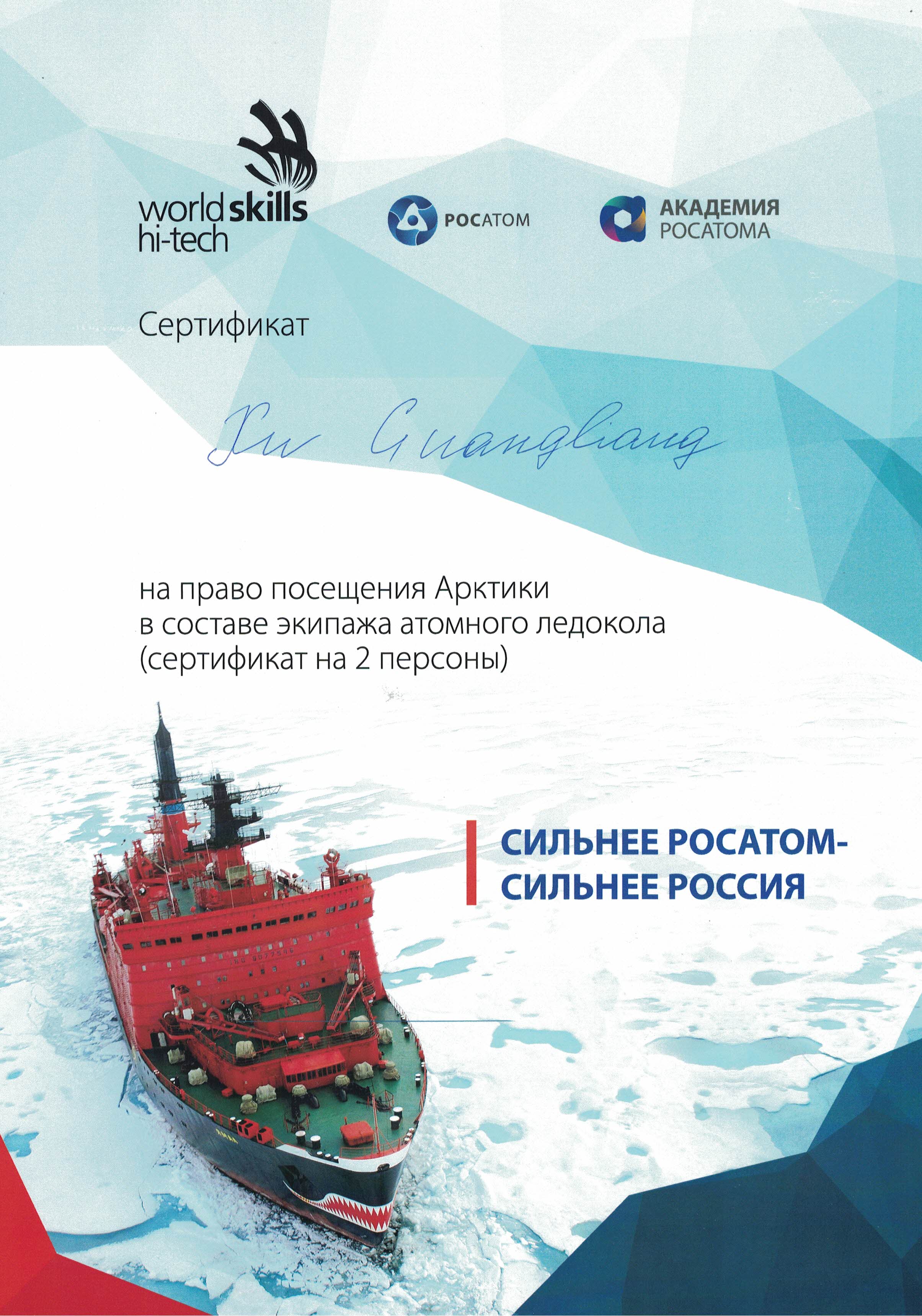 闭幕式当天,额外的惊喜来临,我校骆昌运、许光亮同学获得了俄罗斯大赛组委会颁发的特别大奖--北极之旅!此项特别大奖专门是为除俄罗斯选手外的国际选手设立,将获得两张价值100万卢布、乘坐俄罗斯核动力破冰船考察北极的“破冰之旅”船票。我校骆昌运、许光亮同学在4天的比赛里,克服客场困难、沉着应战,最终压倒其他全部87名国际选手,以最高分的成绩获得此项大奖!