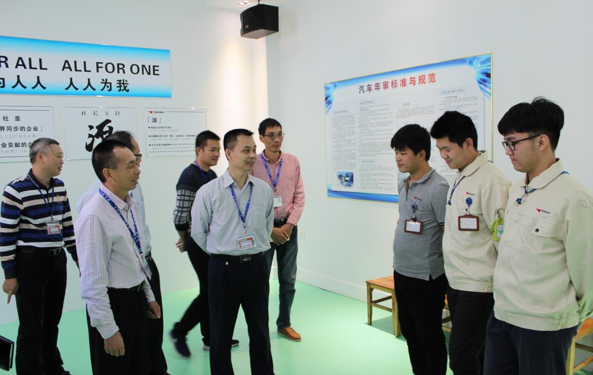 22日,考察组来到佛山顺德矢崎汽车配件有限公司,并看望实习学生。该企业是我校汽车专业的校外实习基地,考察组参观了该企业的生产、宿舍、食堂等场所的环境条件,雷自南校长对该企业的企业文化和硬件条件都给予了充分的肯定。经过双方的交流,该企业有意向在我校建立新能源汽车实训室。