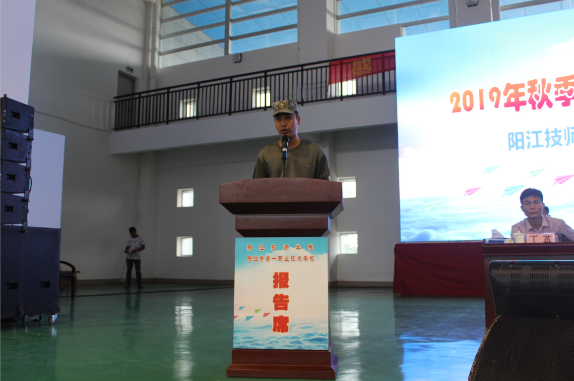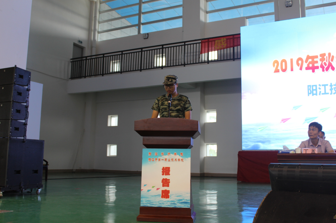 随后,军训教官代表吕焱和新生代表黄应亨同学作表态发言。