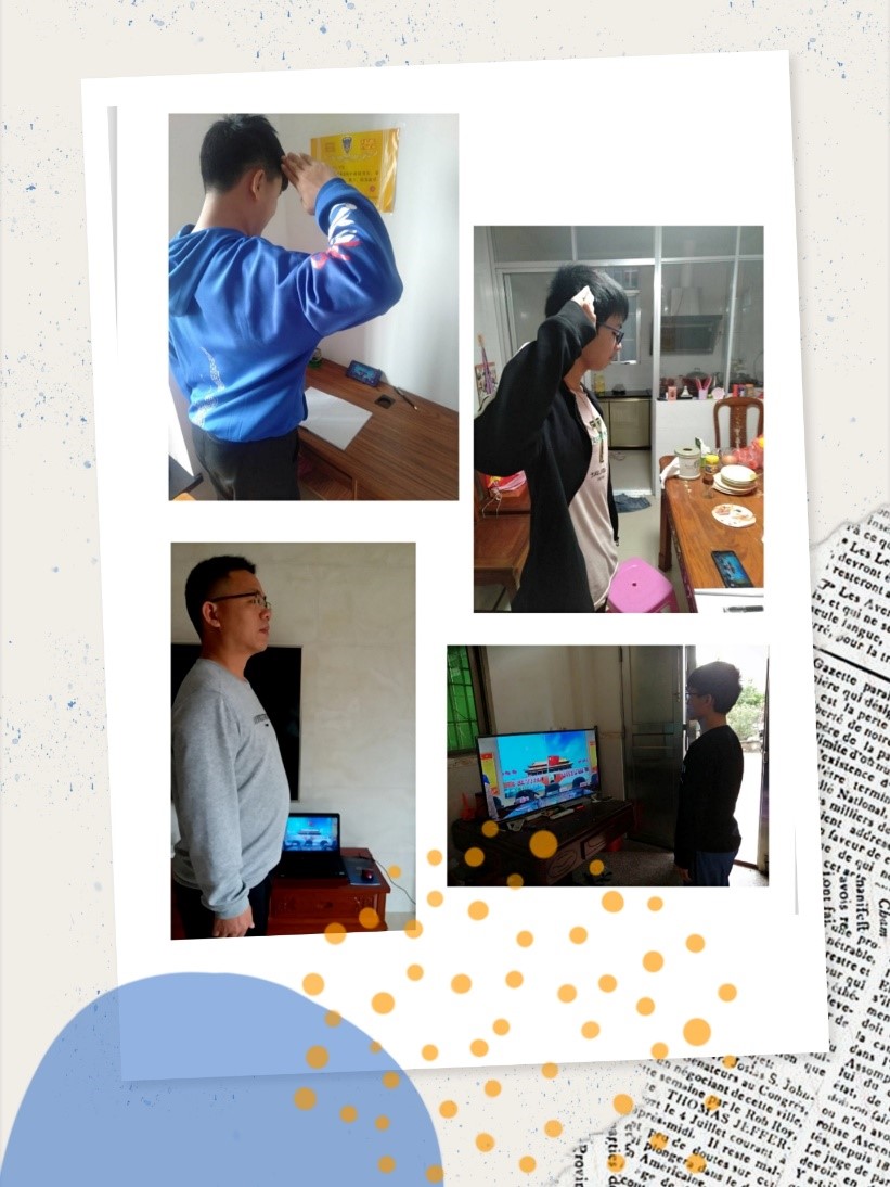 伴着庄严的国歌和鲜艳的五星红旗,各地师生不约而同地在电脑前立正,向国旗行庄严肃穆的注目礼,共同唱响了神圣的国歌,莘莘学子们心潮澎湃,充满新的希望!