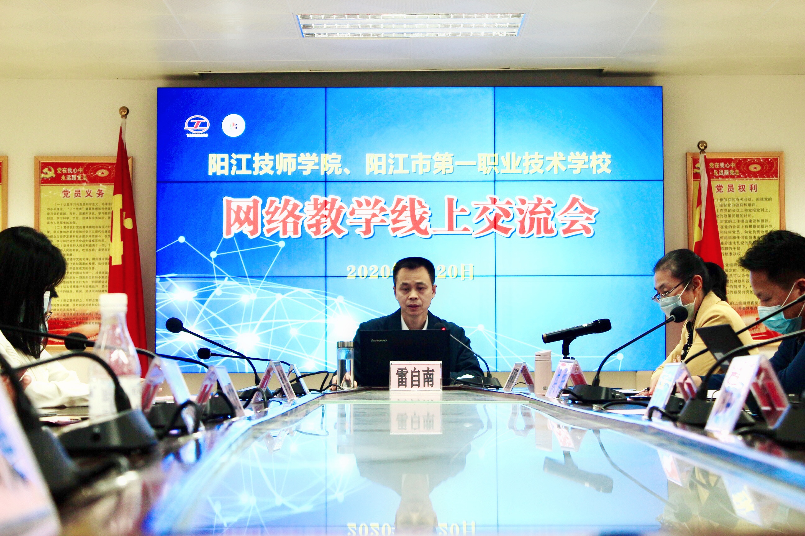 3月20日下午3:00,我校召开了网络教学线上交流会。校长雷自南、副校长杨丽萍、陈志军、洪海以及相关科室主任(科长)在学校综合楼大会议室主会场,参加网络教学线上交流会现场直播,其他教师员工在线通过直播平台全程参加会议。会议由杨丽萍副校长主持。