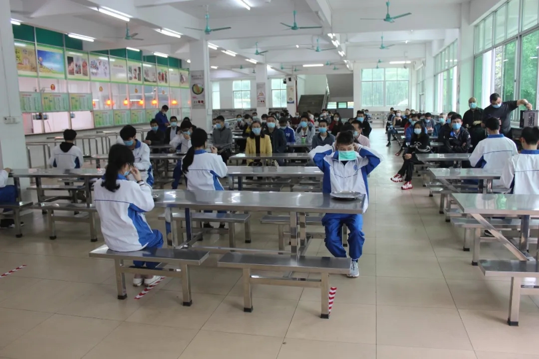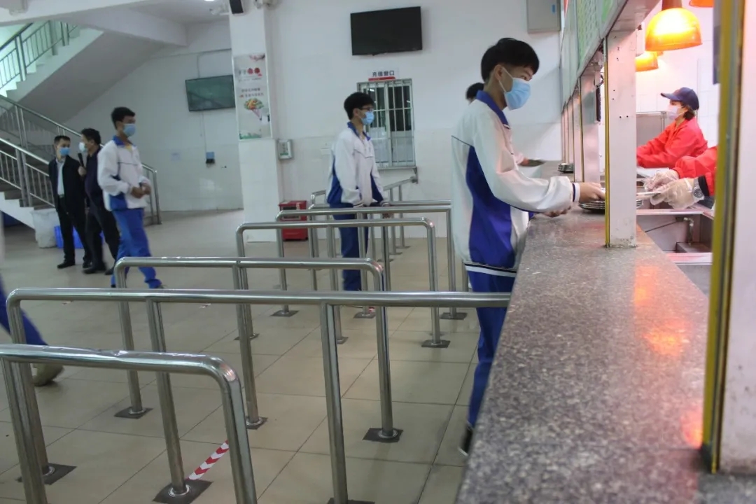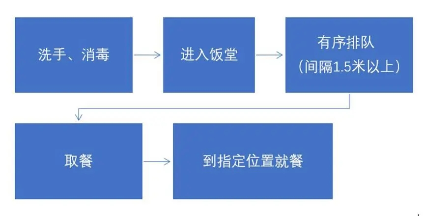饭堂将实行错峰就餐,每位师生在进入饭堂前都要进行“七步洗手法”洗手消毒,按每人间隔1.5米的距离在指定位置有序排队取餐,在就餐过程中尽量避免交流,用餐结束后应把用过的餐巾纸等投放到垃圾桶。