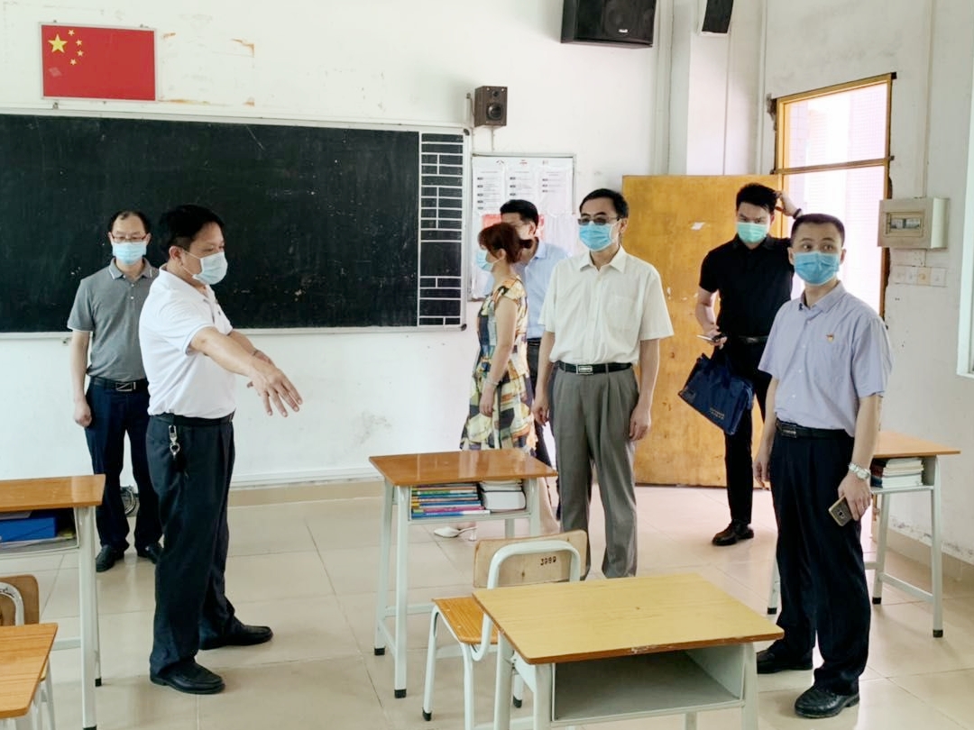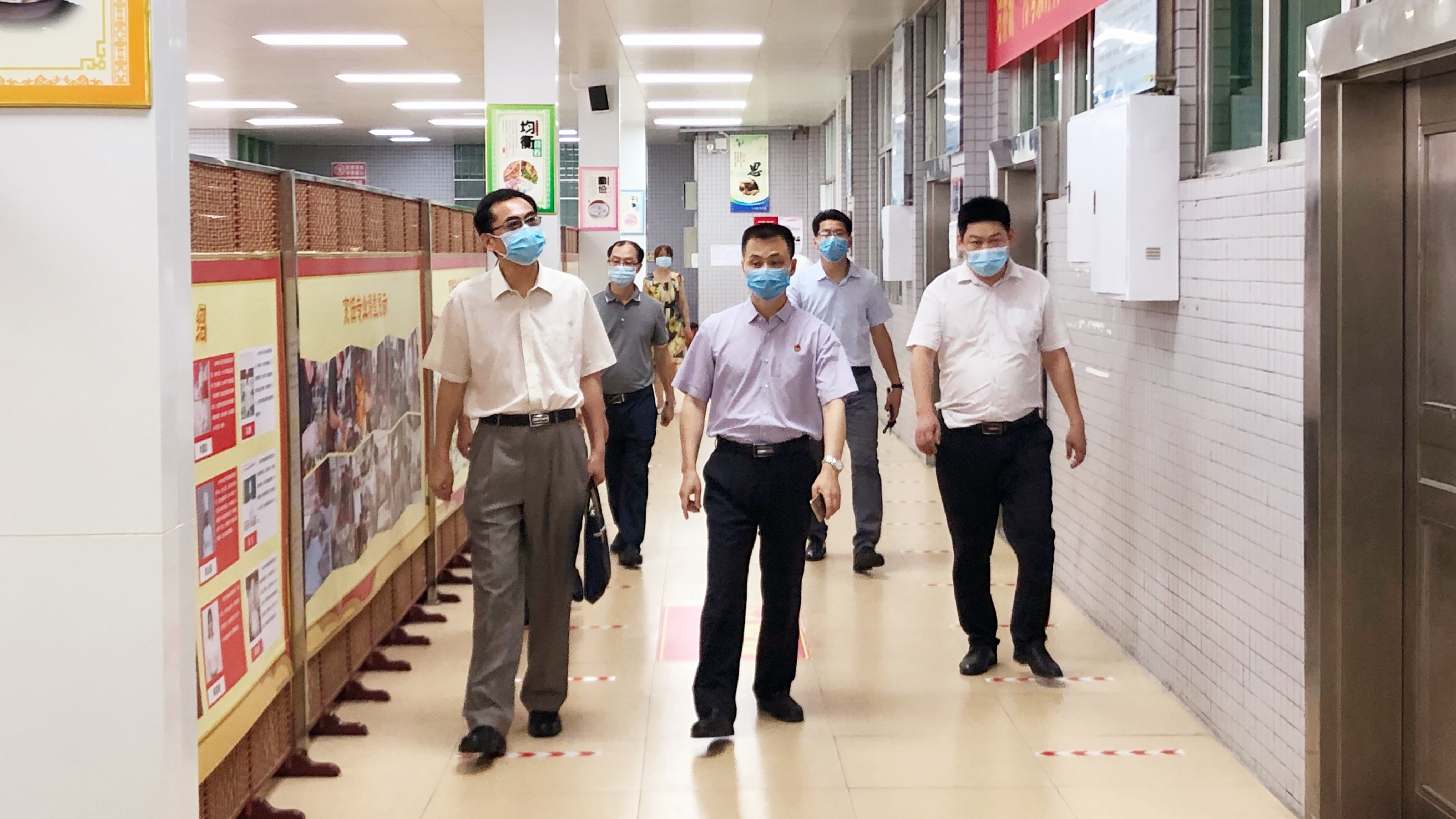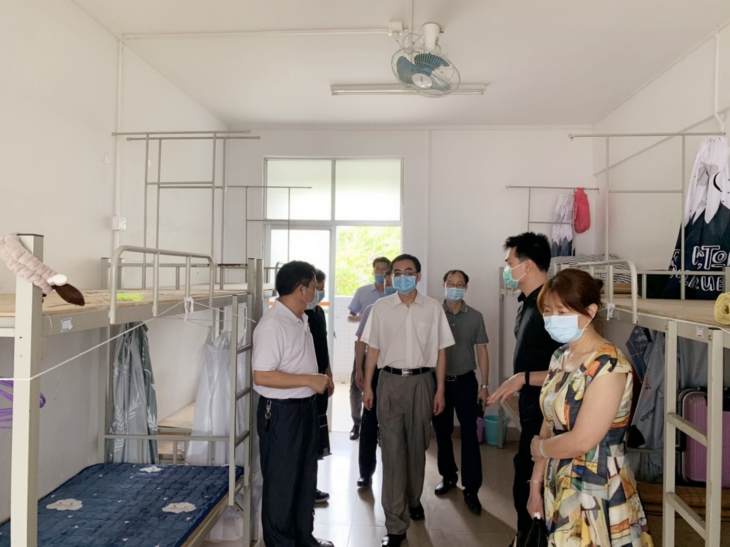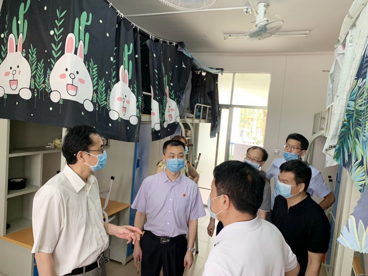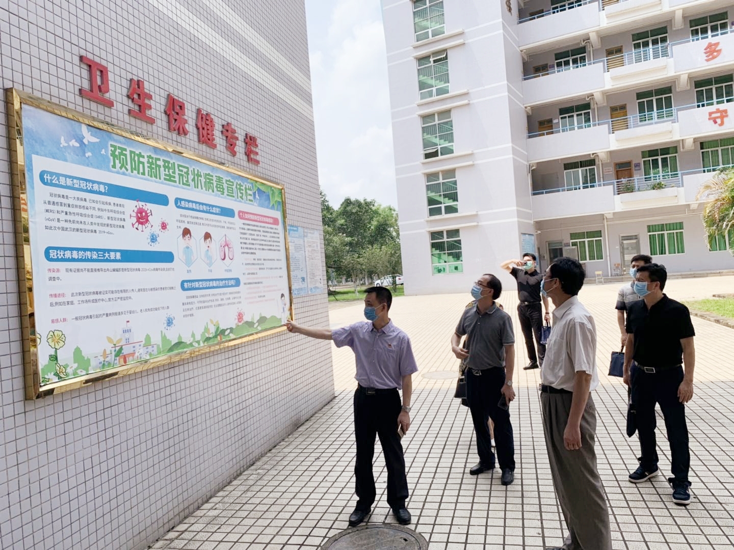 督查组一行先后到大门口、学生宿舍、饭堂、教室、医务室等地实地查看,并询问了学校封闭管理、卫生防疫消毒、食品安全管理、防疫培训、师生疫情防控情况、防控物资储备、应急隔离措施等开学前和开学后的防控预案,并对重点环节、重点部位、重点人群等方面提出指导性意见。
