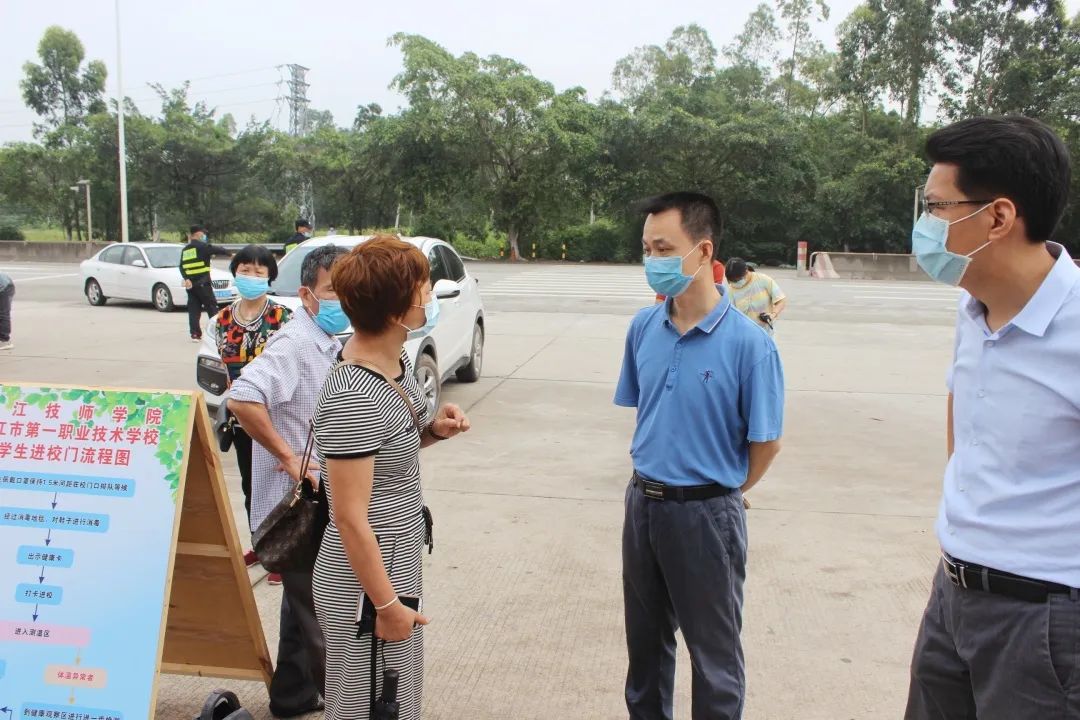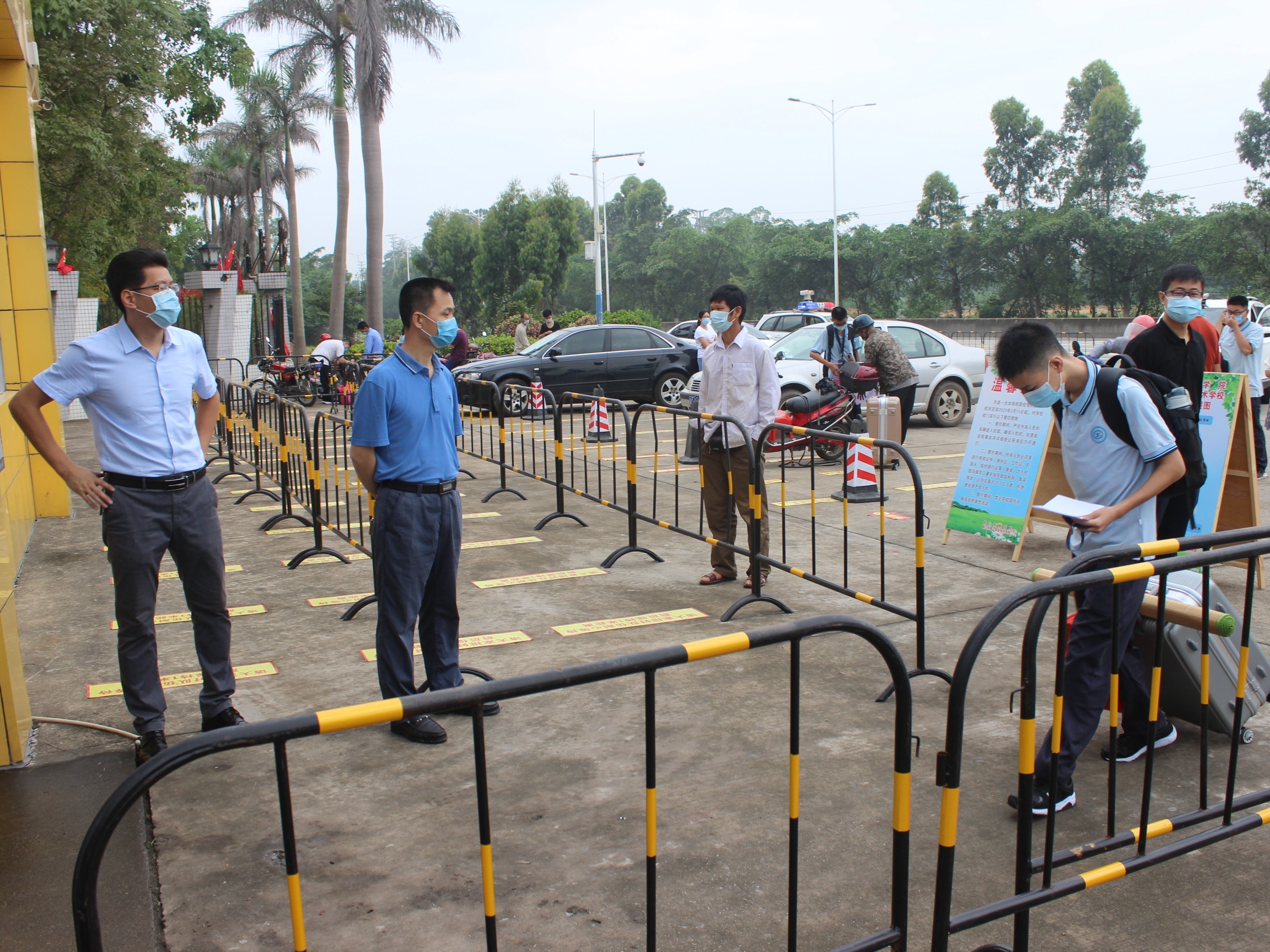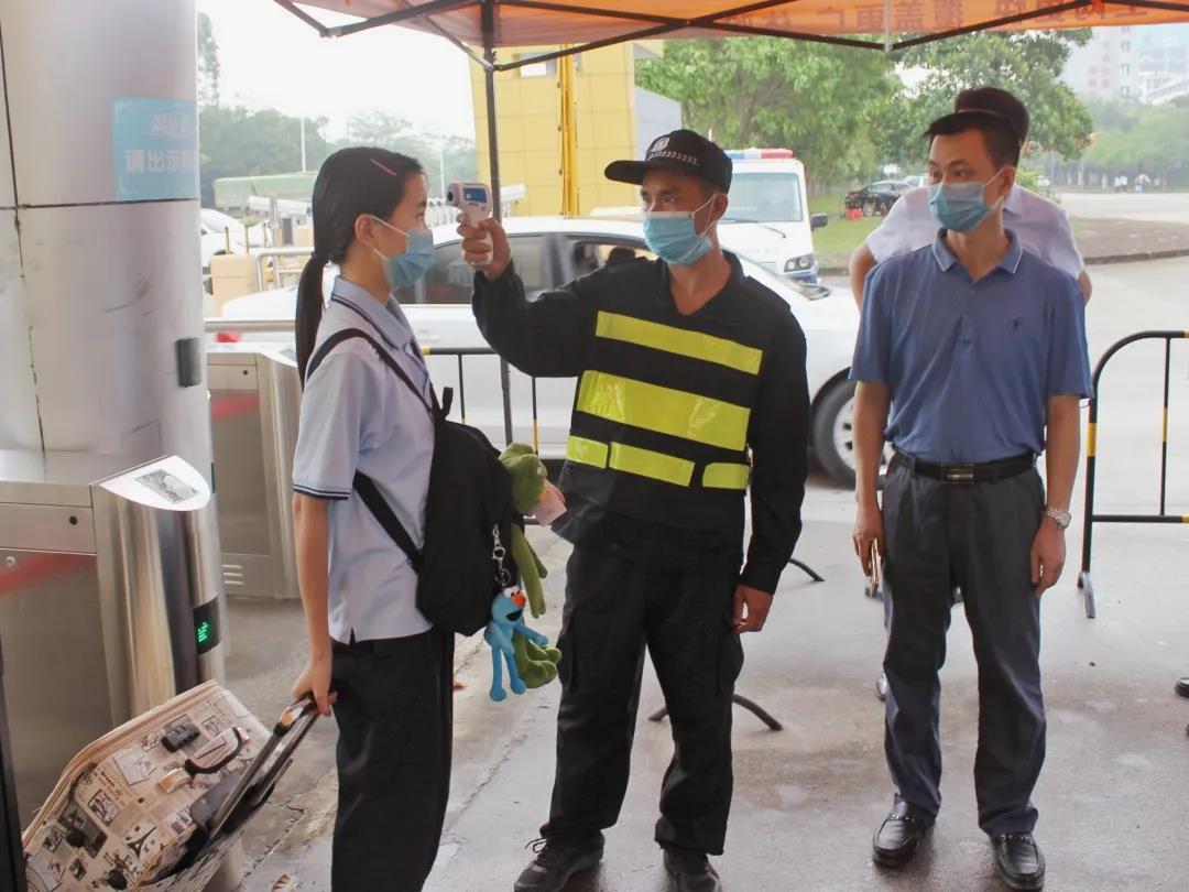 期间,阳江市教育局副局长卢荣存莅临现场指导监督我校返校复学工作。在整个过程里,雷自南校长、谭志葆书记等校领导同志与学生家长们亲切交流,一路为返校工作保驾护航,以确保万无一失。校医守候一旁,严阵以待,其他的教师、保卫处工作人员和学校志愿者们各司其职,驻守岗位。