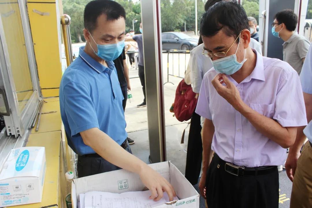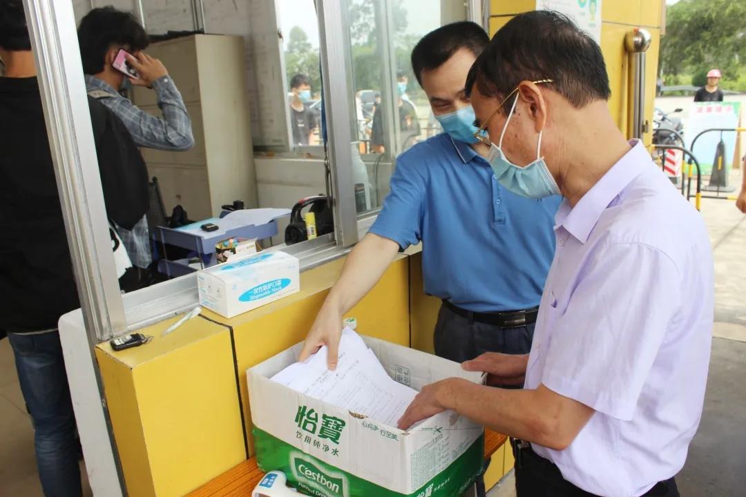 卢荣存副局长与雷自南校长检查健康申报卡收集情况