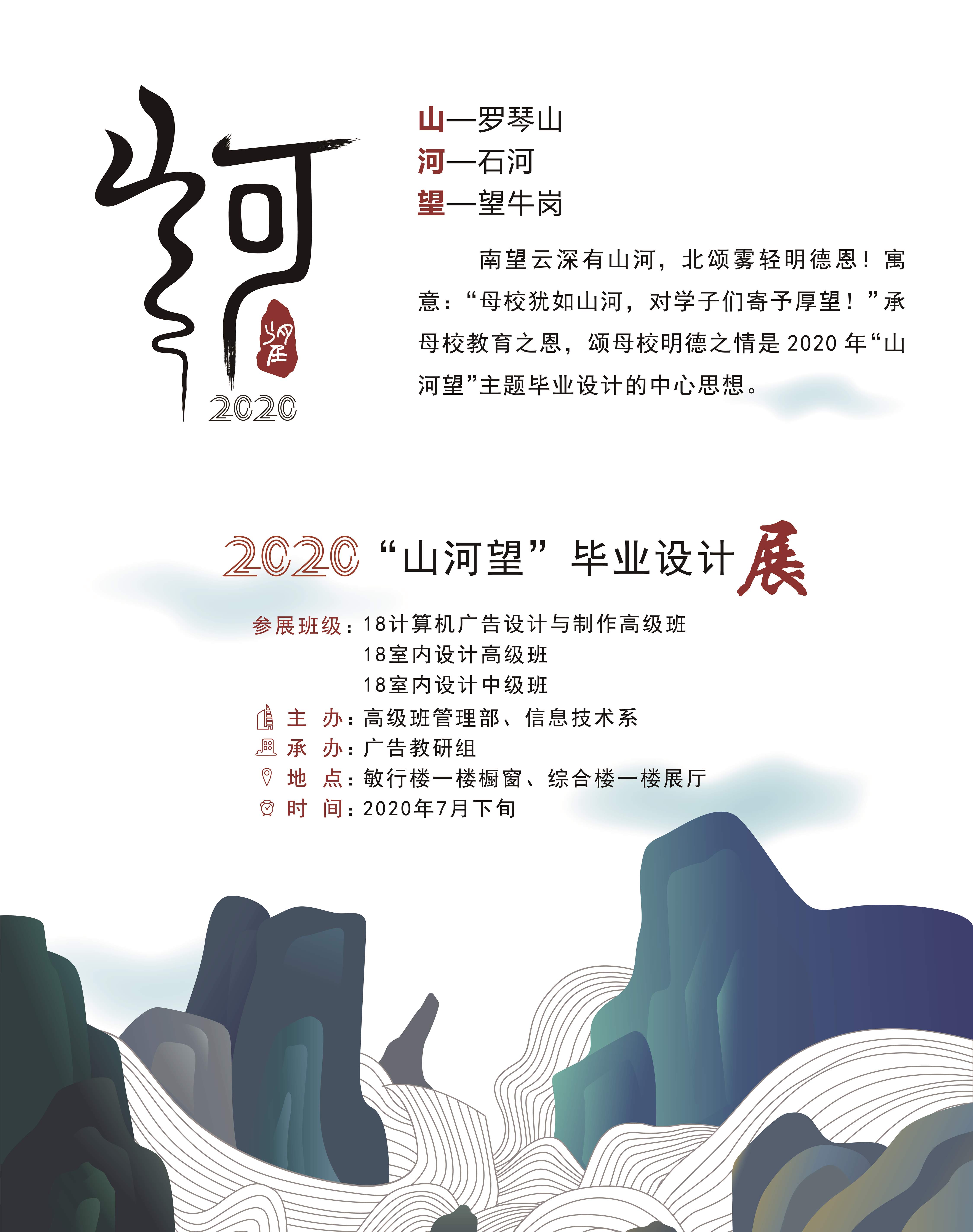 本届毕业设计展以“山河望”为主题,参展班级为18级计算机广告设计与制作高级班、18级室内设计高级班和18级室内设计中级班。毕业作品充分展示了我院学生的创新实践能力,而橱窗设计、LOGO展示、主题选取亮点频现,集中体现了广告教研组人才培养和教学的丰硕成果。今年的毕业设计继续承接了谷寮艺术度假企业旧建筑民宿改造的项目。让项目教学与毕业设计结合,是我院教学改革探索的未来方向和创新之处。