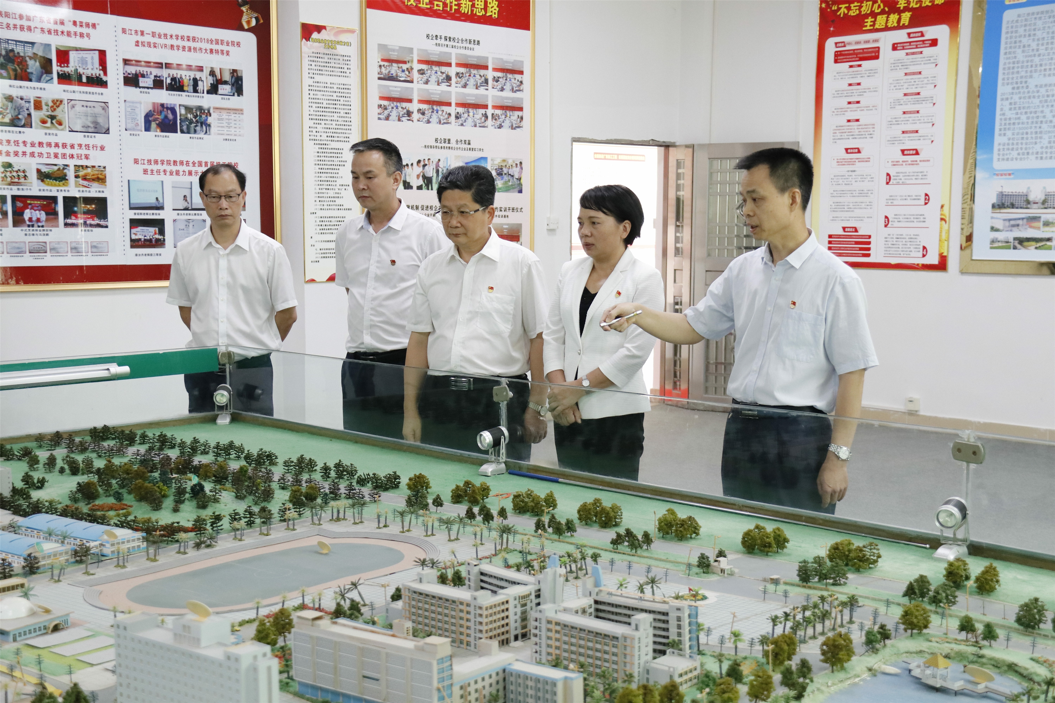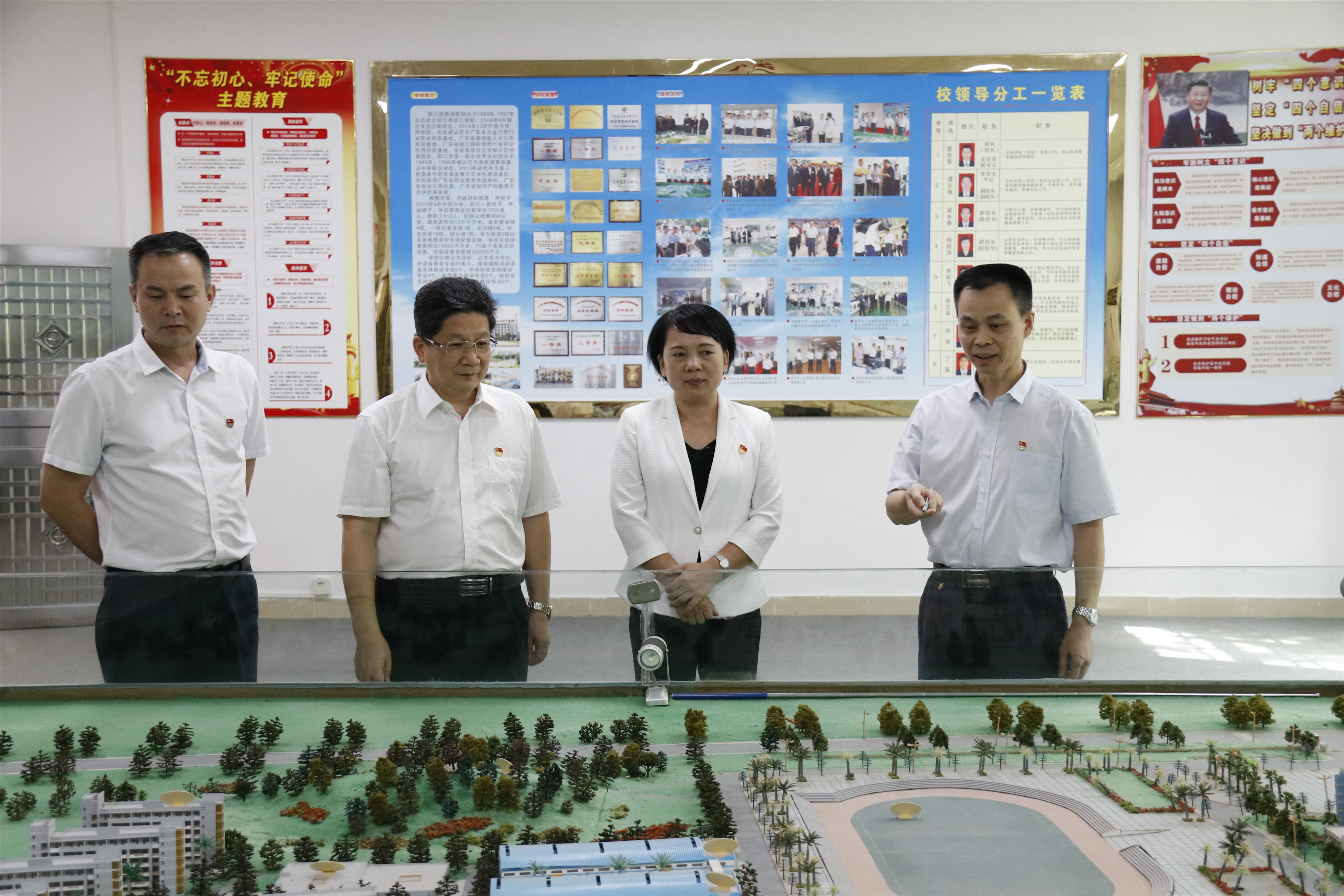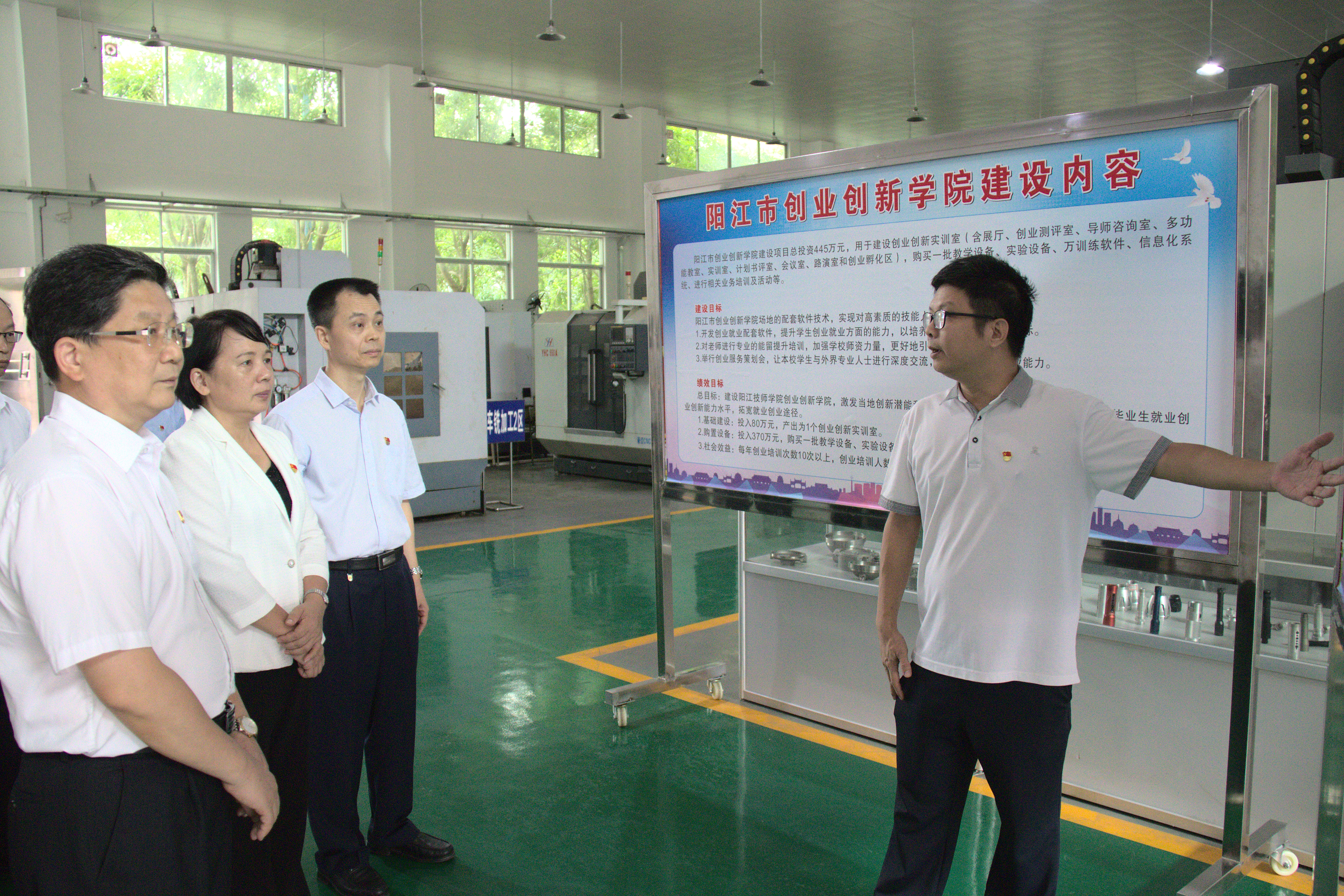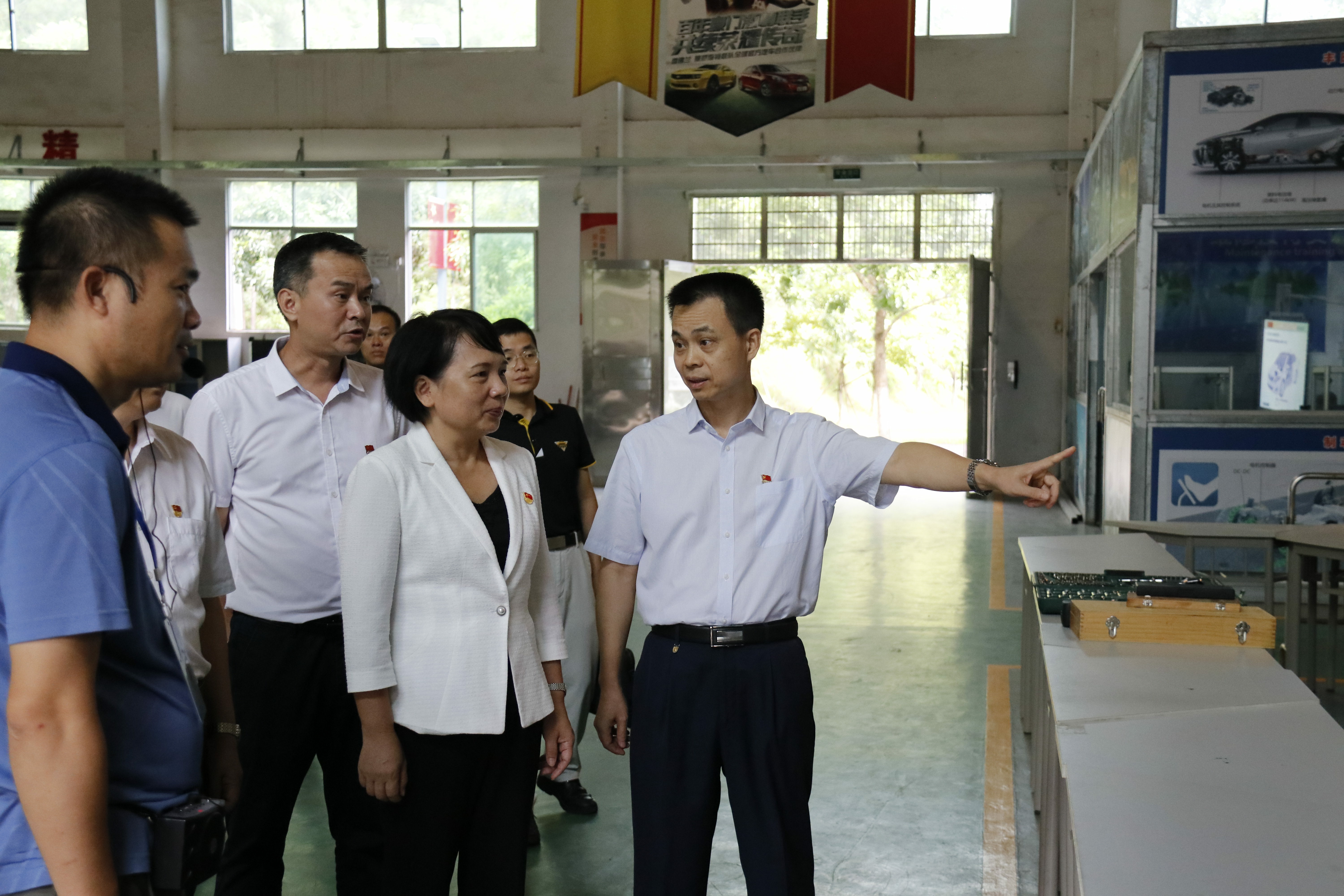 程凤英副市长一行首先视察了我校实训中心,参观了我校汽车商务、汽车电气设备构造、五金刀剪生产、工业机器人模拟训练等课程的教师授课和学生实操现场。在详细听取雷自南校长汇报两校合并办学以来的校园环境整体规划、“广东技工”工程开展情况、近年招生及学生实习就业情况、创业创新学院项目孵化及晋升高职院校的统筹准备等相关情况后,程副市长赞扬了我校在高技能人才培养硬件设施、师资队伍建设方面所做的努力,并肯定了我校实施 “广东技工”工程的成绩。强调要继续做好“广东技工”工程,充分发挥学校在“广东技工”相关专业师资力量、教学硬件、校外基地等方面的优势,积极开展职业技能培训,提升“广东技工”技能水平和就业创业能力,并通过补短板,加快晋升高职院校的脚步,引进高水平人才以加强师资力量。同时要提高师生自主研发、创新工艺技术的积极性,坚持“以赛促学,以赛促教”,不断深化教学改革。