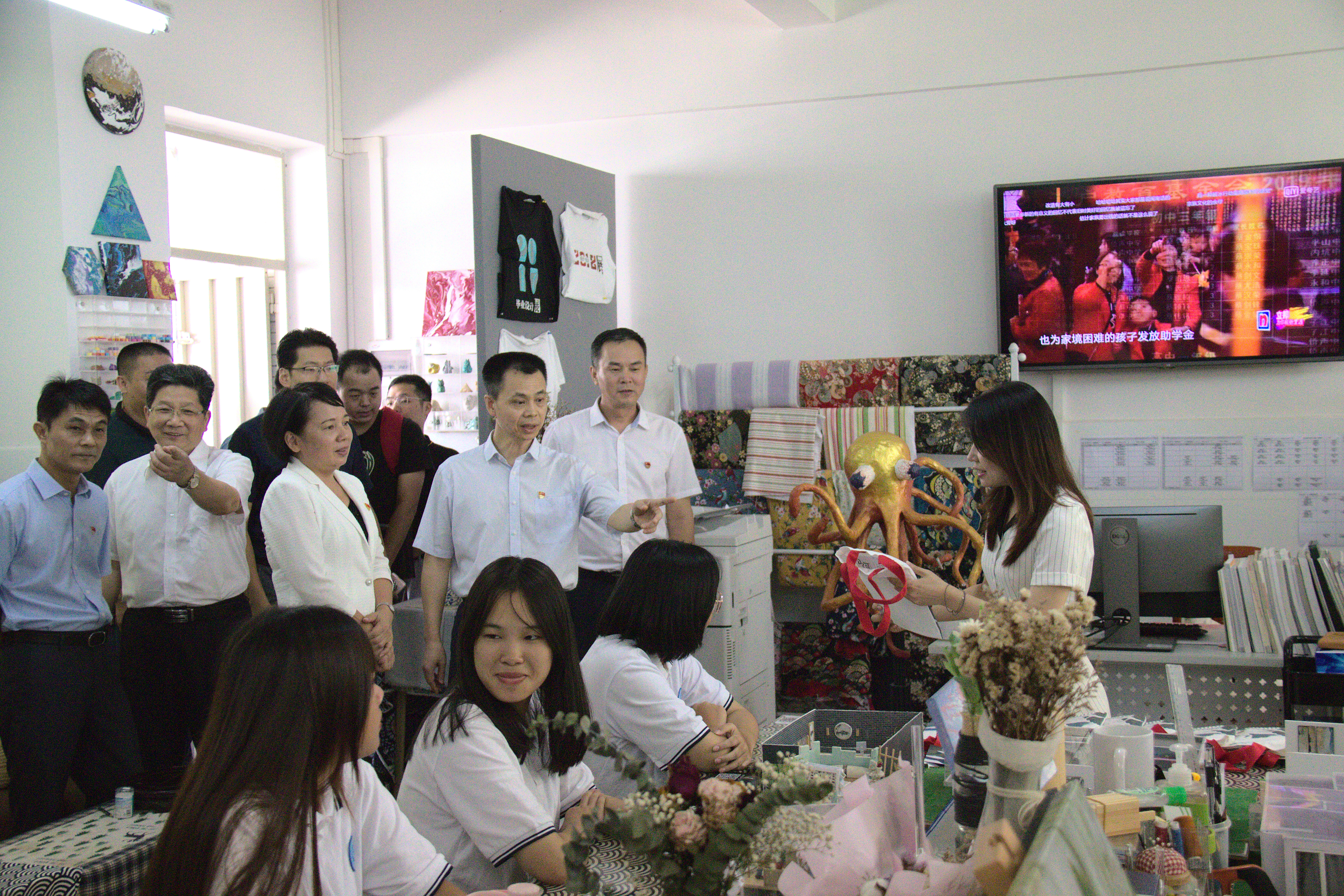 接着,程凤英副市长视察了我校知行楼的广告设计学习室、室内设计学习室、国画工作室、建筑模型制作室、装饰工艺制作室、漆艺工作室。雷自南校长介绍了我校学生的报读专业选择情况、就业前景、升学深造方向及相关专业的课程设计和在大型赛事的获奖情况。程凤英副市长指出我校在未来应当重视招生宣传工作,重视当前学生报读意向和人生规划,在做好做强技能训练的同时,打通中职学生深造的道路,为培养更多高技能人才做准备,并鼓励同学们要珍惜青春韶华,学好本领。