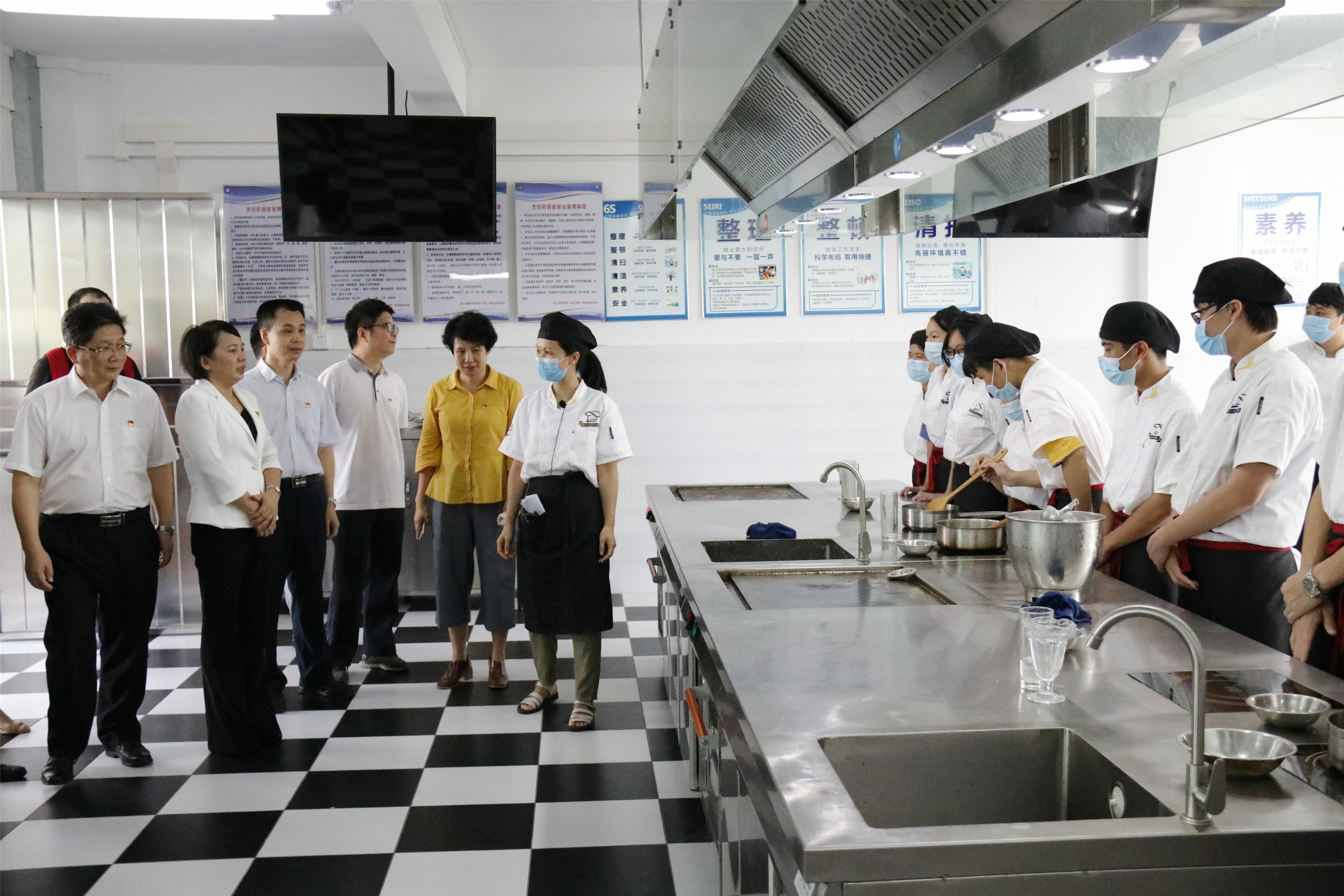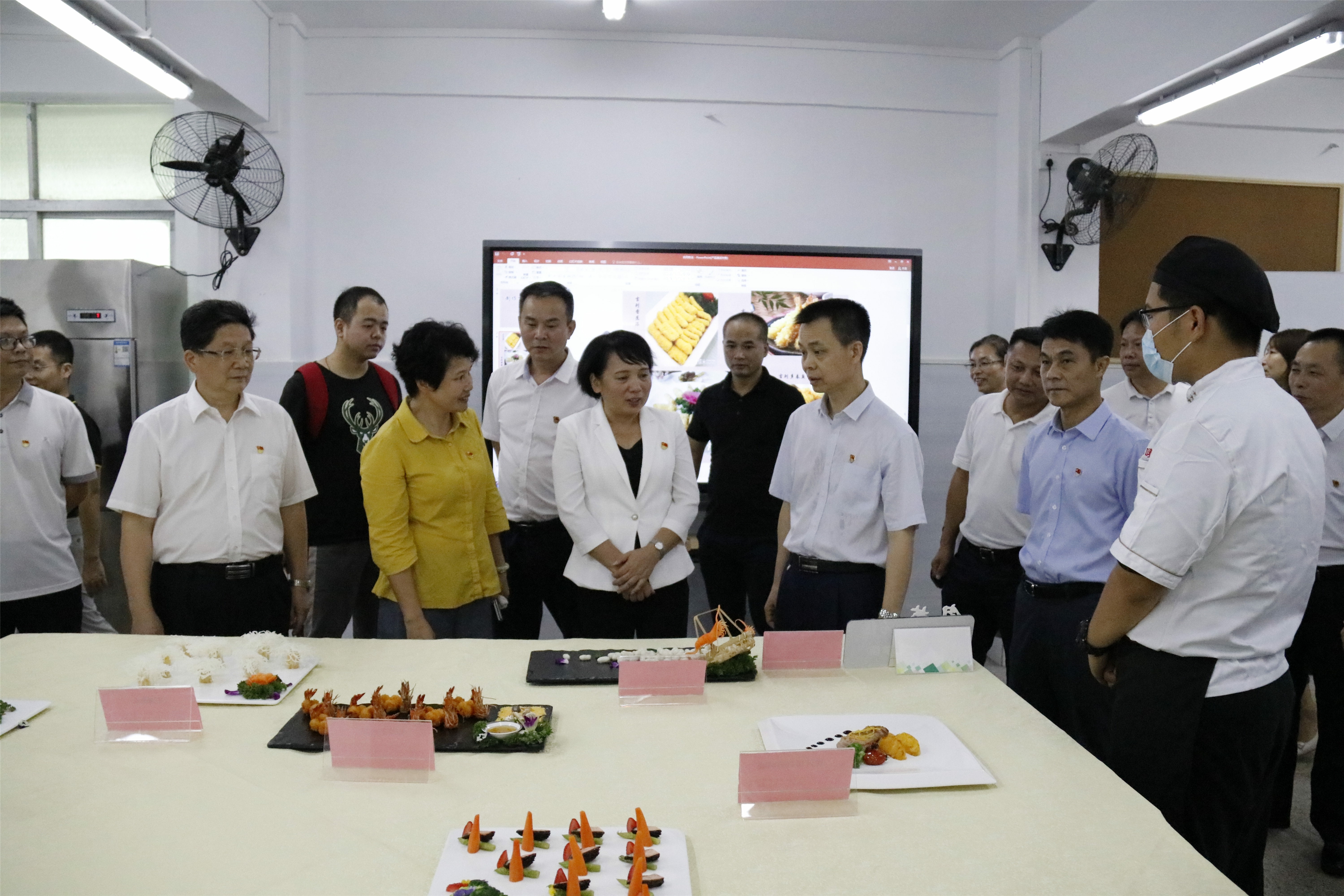 最后,程凤英副市长视察了我校省级粤菜师傅培训基地。程副市长参观了烹饪专业制作传统食品的教学和实训现场,与学生亲切交流,详细了解我校粤菜菜式和制作工艺的创新方向、技能竞赛备赛、学生就业情况等问题,高度肯定了我校在实施“粤菜师傅”工程中的场地和设施设备建设、校企合作、企业新型学徒制培训、社会培训等方面的成效,提出我校要继续扎实做好“粤菜师傅”工程,积极开展职业技能培训,对接乡村振兴和精准扶贫工作。
