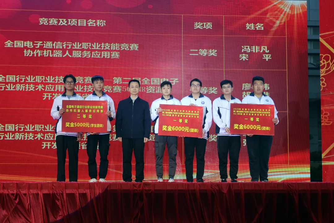 雷自南校长首先向全体教职员工、同学表示诚挚的问候和致以节日的祝福。再回首特殊的2020年,激励同学们向抗疫前线的英雄学习,回顾我校师生在防控疫情方面的贡献,表扬师生们克服重重困难、锐意进取、积极备战并在各项竞赛中屡获佳绩。最后,雷校长对两校师生寄予新一年的新期盼,希望两校管理再上新水平,质量再上新台阶,发展再添新亮点,技能竞赛再获更高殊荣,能以毫不动摇的态度继续齐心抗疫,将今年抗击疫情期间的同舟共济、顽强拼搏的精神贯穿到2021年的各项工作。