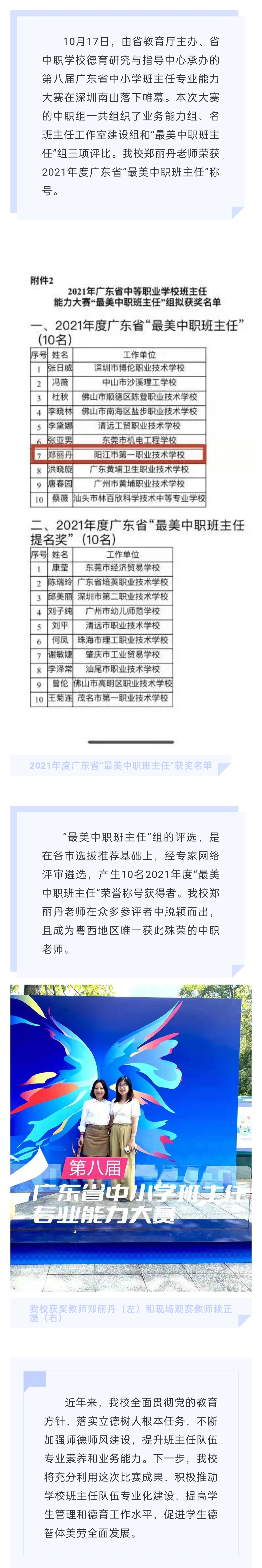 喜讯!我校郑丽丹老师荣获2021年度广东省“最美中职班主任”称号