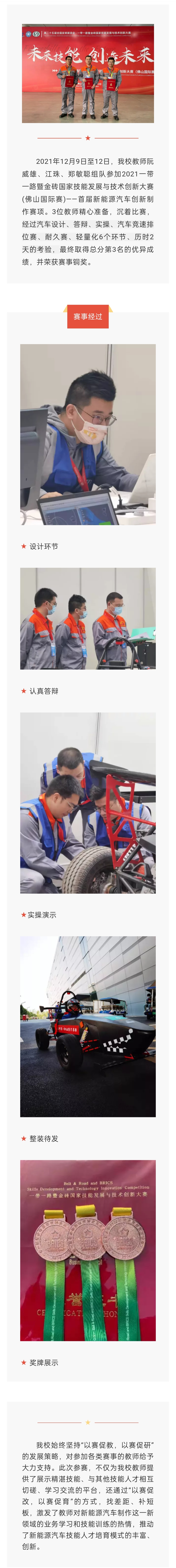 以赛促教 以赛促研 | 我校教师荣获2021一带一路暨金砖国家技能发展与技术创新大赛(佛山国际赛)首届新能源汽车创新制作赛项铜奖