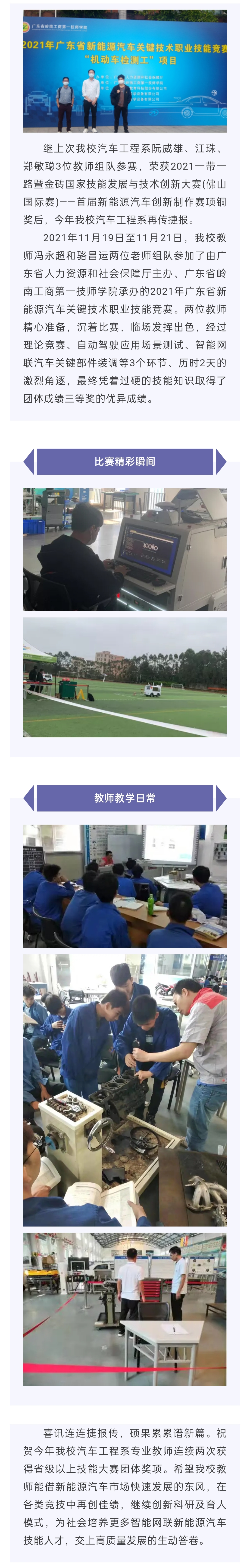 喜讯连连捷报传 硕果累累谱新篇 | 我校教师荣获2021年广东省新能源汽车关键技术职业技能竞赛团体成绩三等奖