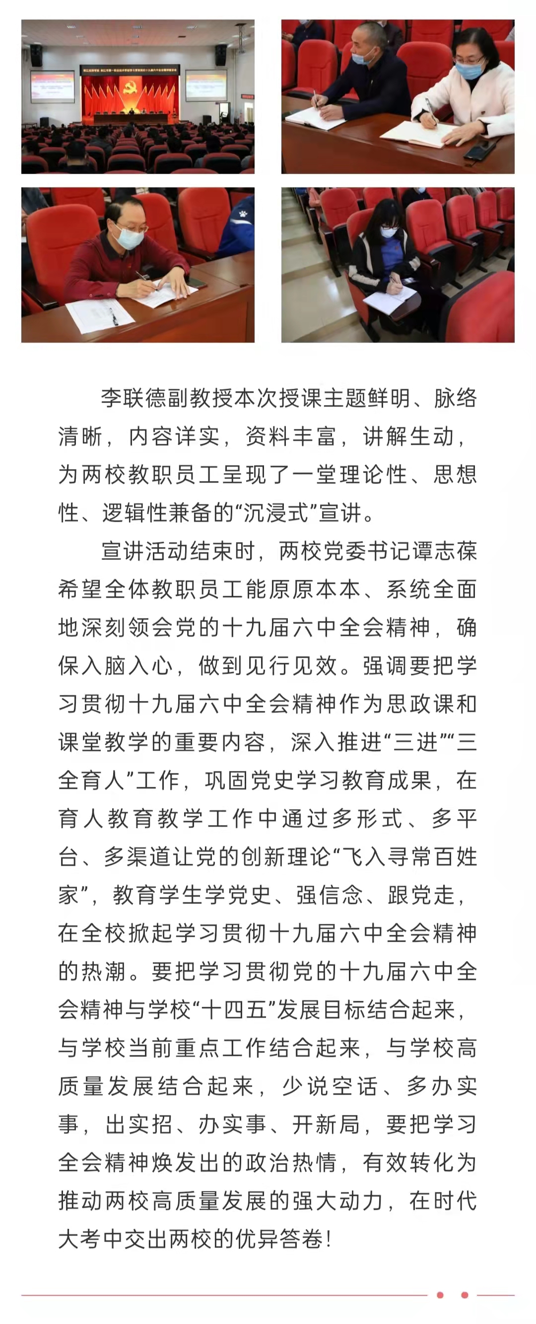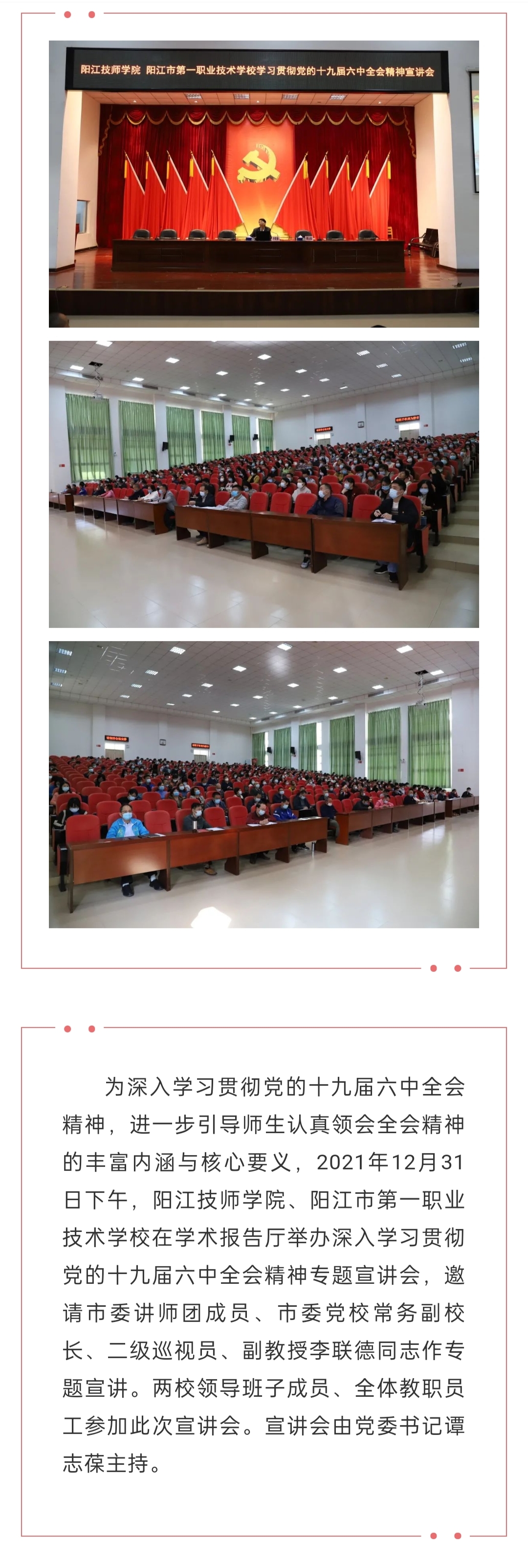 奋楫扬帆 笃定前行 | 我校召开学习贯彻党的十九届六中全会精神宣讲报告会