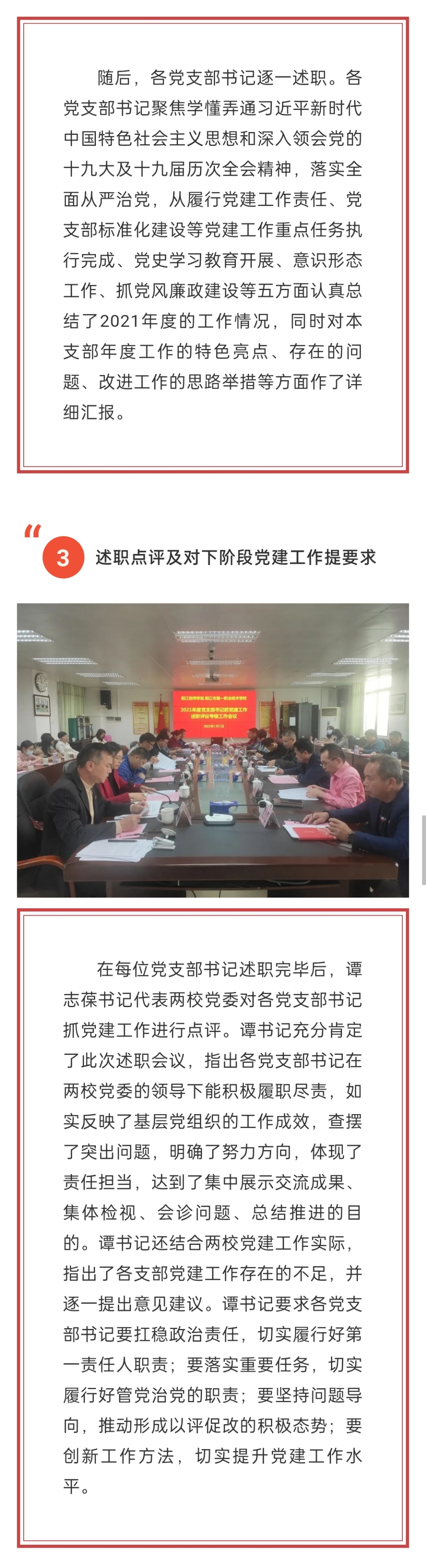 我校召开2021年度党支部书记抓党建工作述职评议考核工作会议