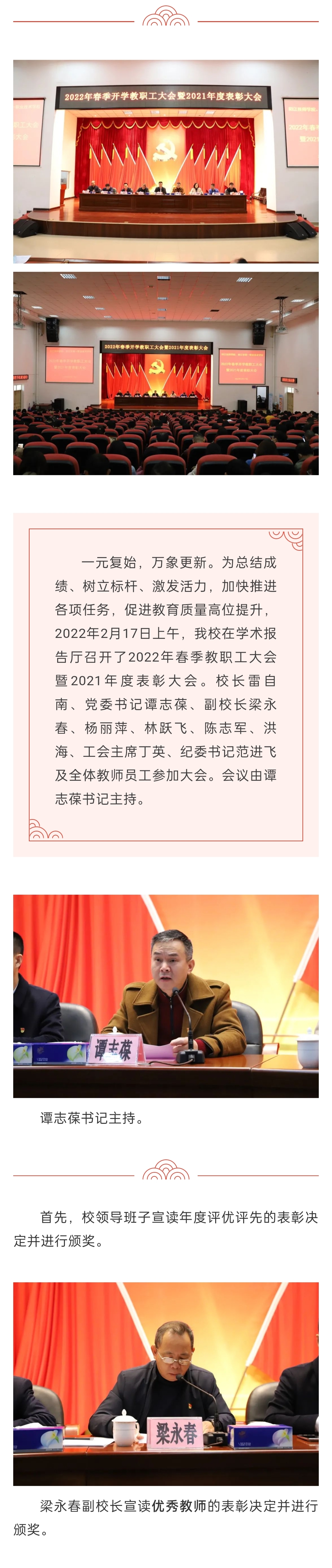 迎春驰玉骢 一起向未来 | 我校召开2022年春季教职工大会暨2021年度表彰大会