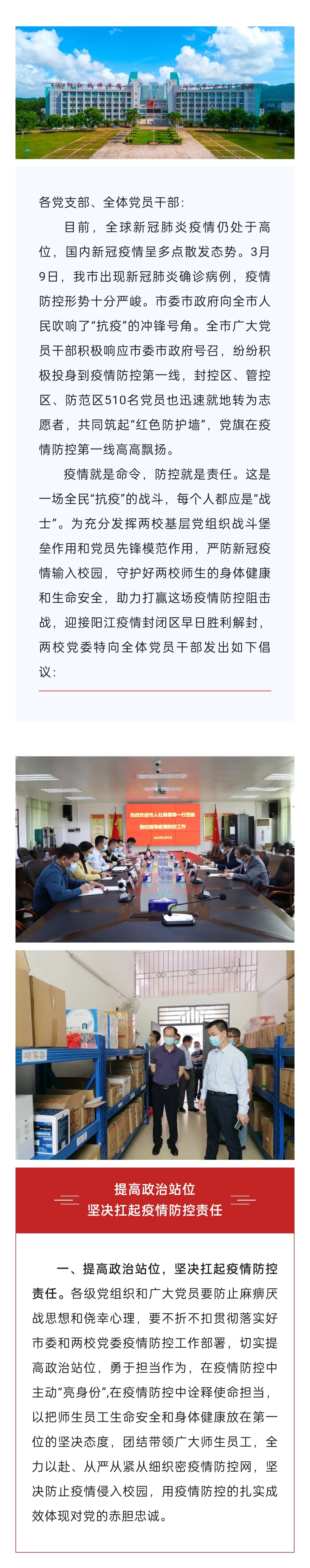亮身份当先锋,扛责任作表率——致两校党支部和全体党员的疫情防控倡议书