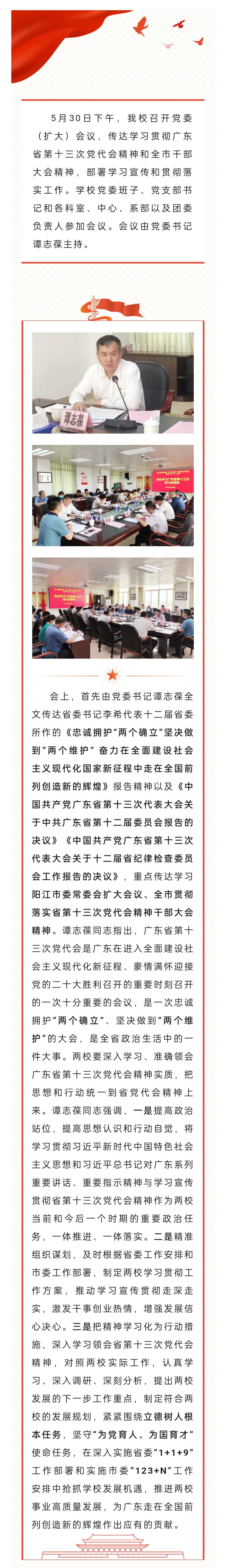 我校召开党委(扩大)会议传达学习广东省第十三次党代会精神