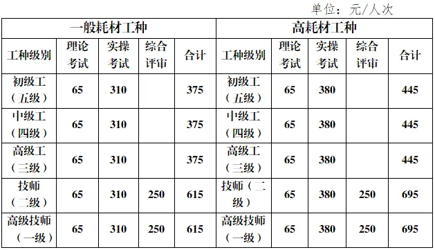 1、本收费标准根据《广东省人力资源和社会保障厅关于明确我省人力资源社会保障部门实施的技能人员职业资格考试收费有关事项的通知(粤人社规[2019]26号)》执行,不含实操考试科目考试所需主材料费用。