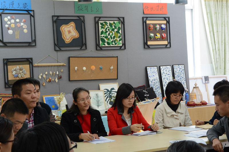 示范课是由我院骨干教师罗雅文、许小欣主讲,授课内容是客厅软装配饰设计之成果展示——《五式一厅》。教学内容联系生活、生产,体现理论与实践一体化。学生们通过小组合作形式,分别以中式风格、日式风格、传统工艺风格、地中海风格、现代风格为主题设计和制作了五种风格的客厅软装配饰代表作品,作品创意新颖。教学全过程体现了“学生为主体、教师为主导”教学策略。教学设计独具特色,课堂组织形式灵活,学生参与程度高,表现积极,在团队合作中互相协作,共同完成学习任务,教学评价模式创新、有效。