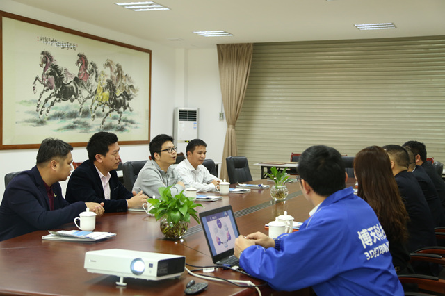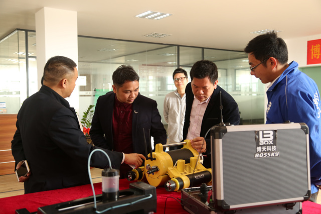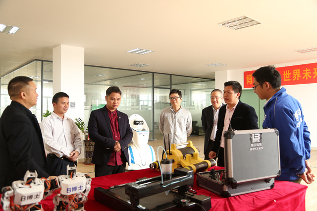 在该公司董事长黄代全、副总经理张建、销售经理卢显程、行政部经理黄冠华等人的陪同下,陈志军副校长一行参观了博天科技的智能磨削机、3D打印机、水下机器人、迎宾机器人、扫地机器人展示区。