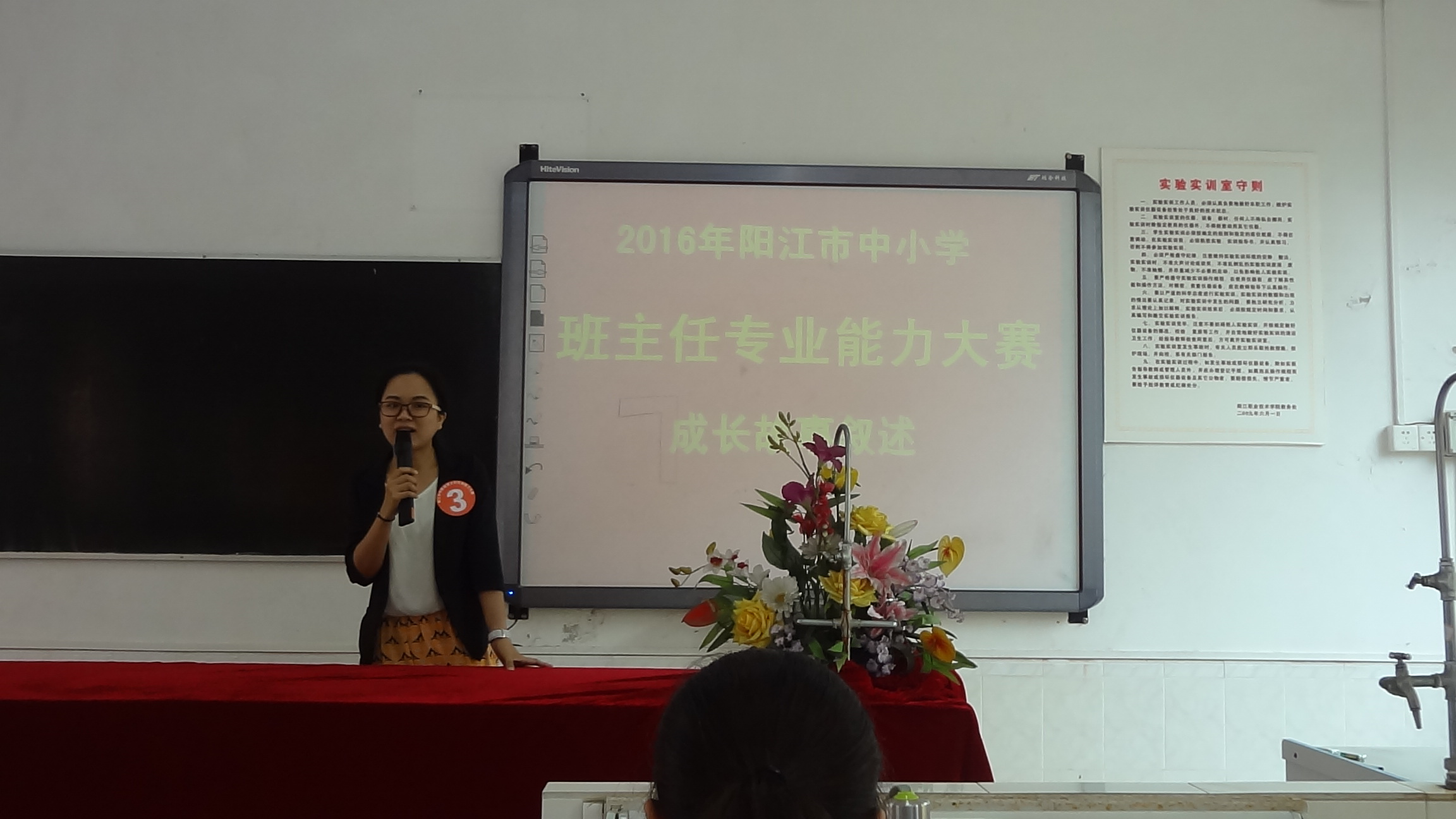 本次比赛设主题班会设计、成长故事叙述、情景答辩三个环节。刘志娴老师在各个比赛环节中表现优异,成长故事叙述情真意切,主题班会设计条理清晰,情景答辩更是充满智慧,充分体现了我校班主任扎实的功底和良好的素质。