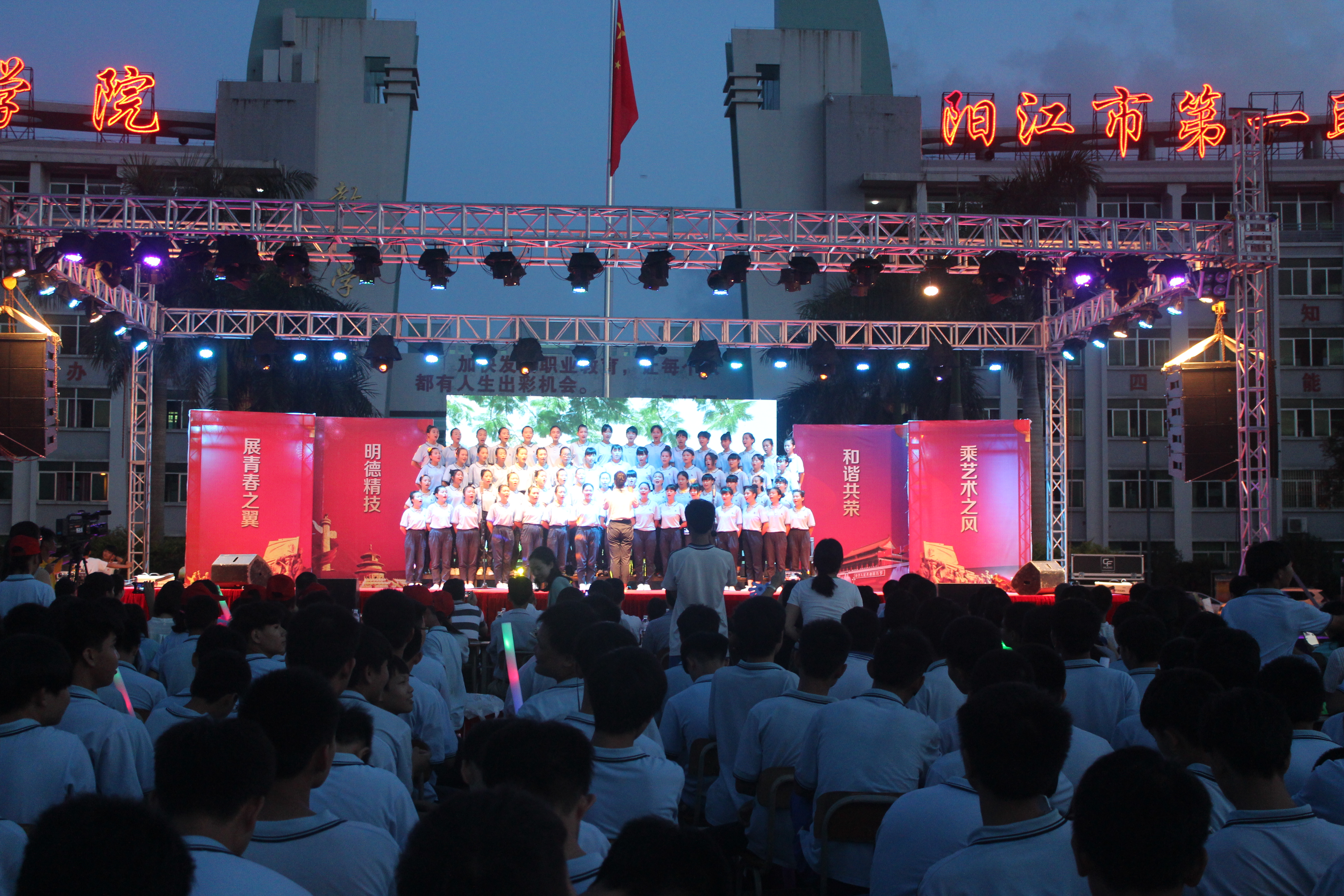 6月21日晚,我校隆重举行2016年庆祝中国共产党成立95周年暨第九届校园文化艺术节文艺汇演晚会。校长雷自南、校党总支书记谭志葆等校领导及全体师生一起观看了晚会,校党总支书记谭志葆为晚会致辞。