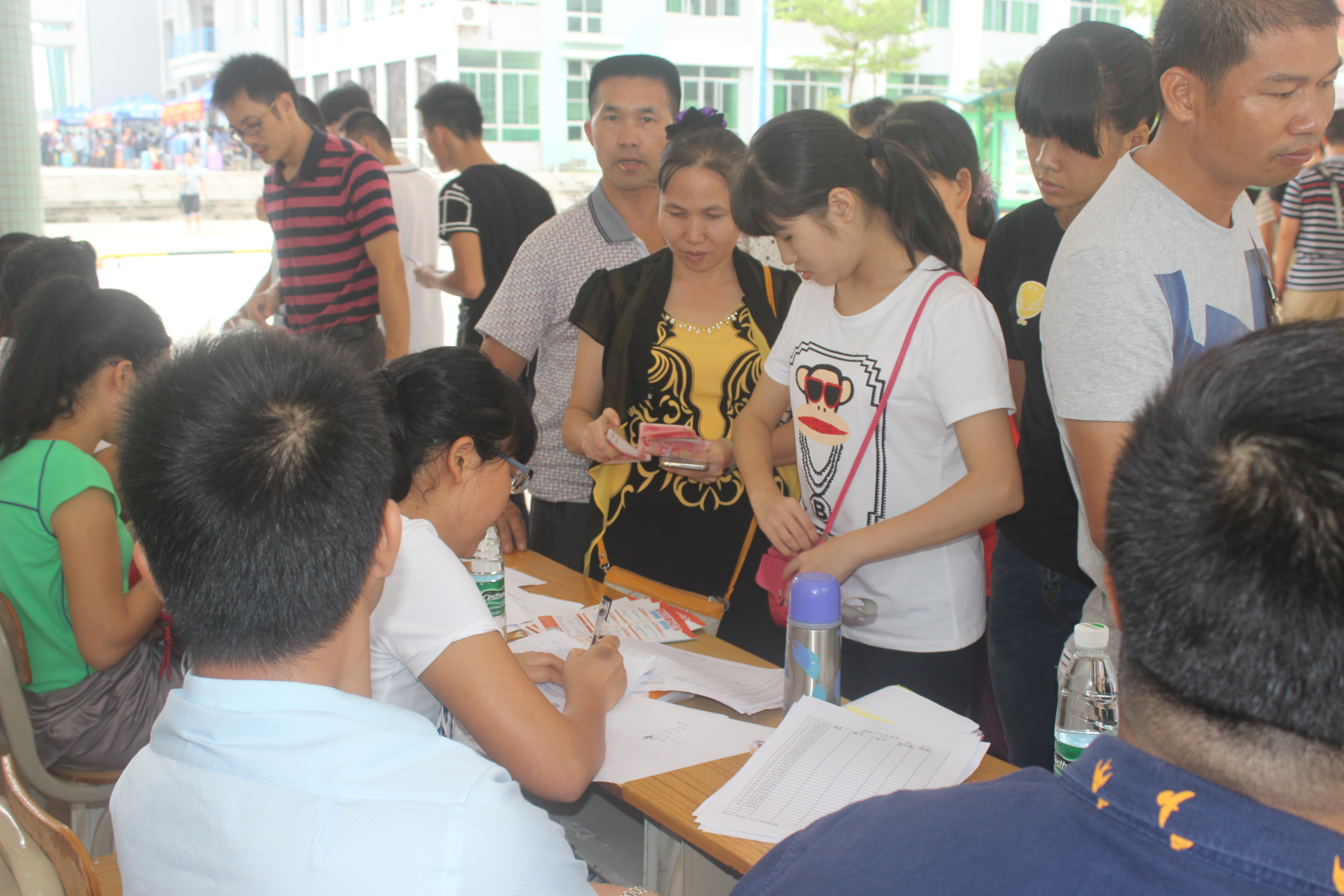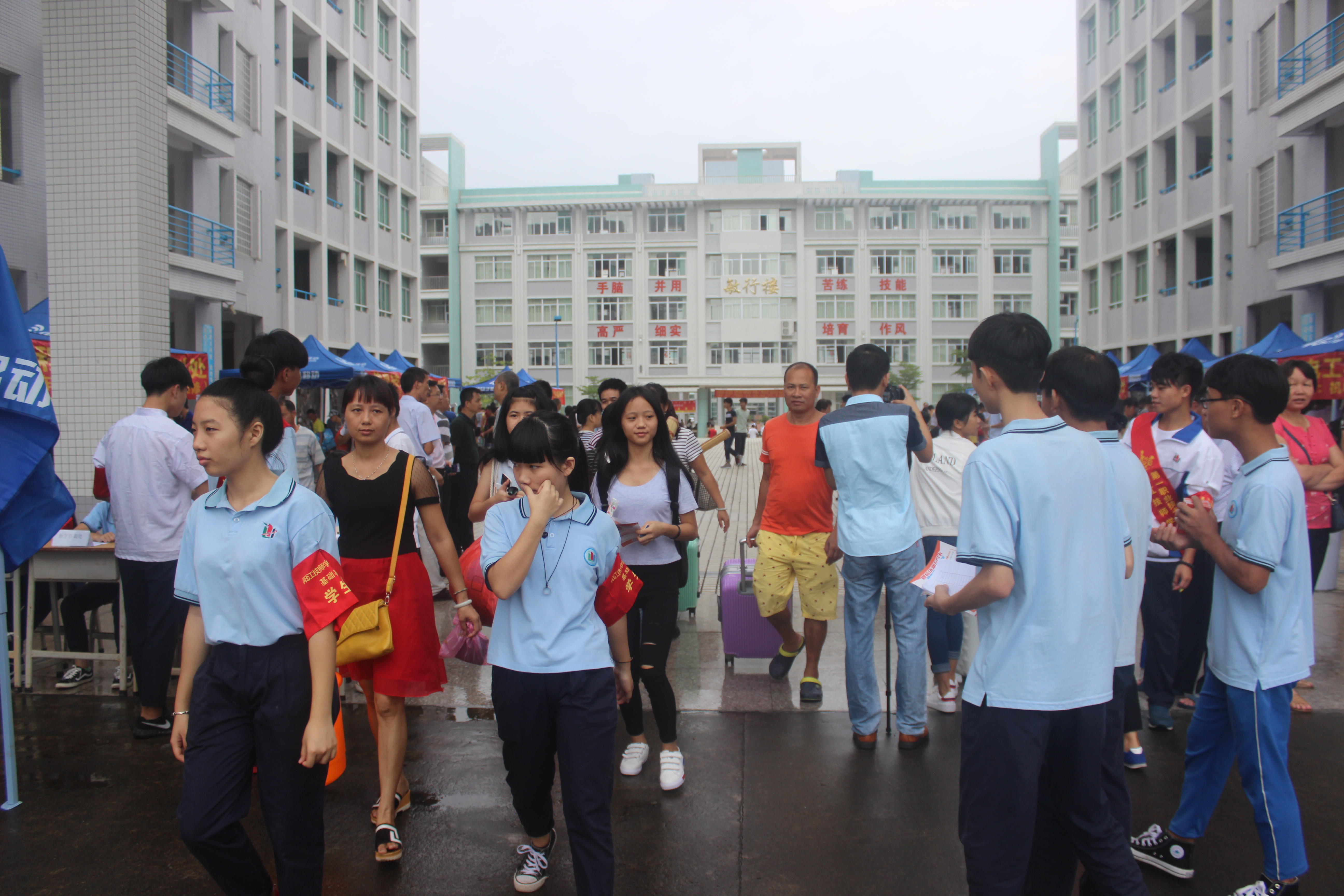 今天一大早,我校校园中就会出现一道靓丽的风景线——学校的车辆时不时从汽车总站将一批批新生接到学校,各个系部的自愿者,他们身着统一的服装,奔波在校园的各个角落,为学生和家长们提供力所能及的帮助;学校各系部的负责人及班主任教师来回奔波,为学生安排好缴费、吃住、咨询等注册工作。