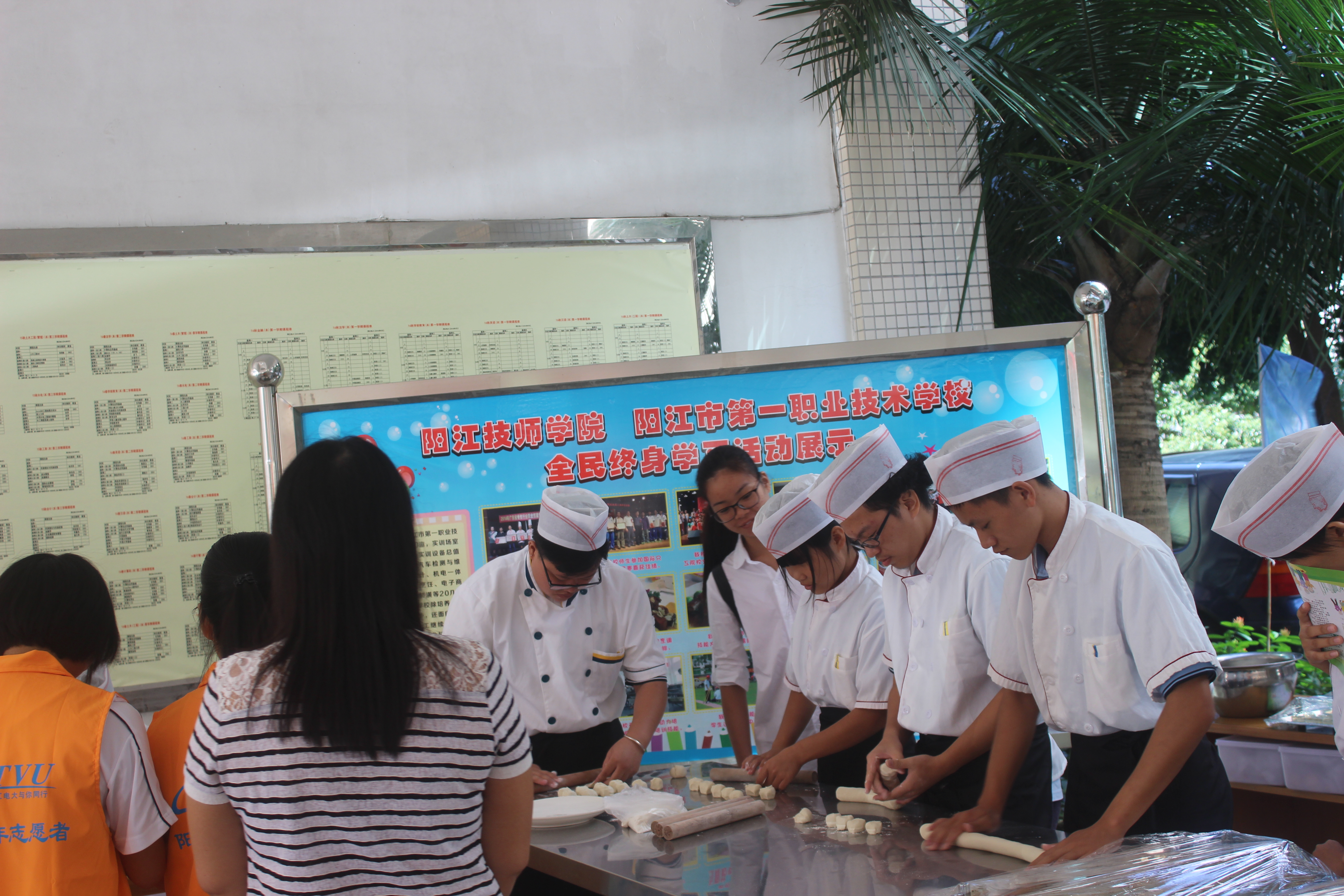 10月11日上午,阳江市2016年全面终身学习活动周开幕仪式暨社区教育成果展示活动在阳江市广播电视大学隆重举行。我校烹饪专业的师生现场向市民演示、传授点心制作方法,为推进全民继续教育、建设学习型社会贡献力量。