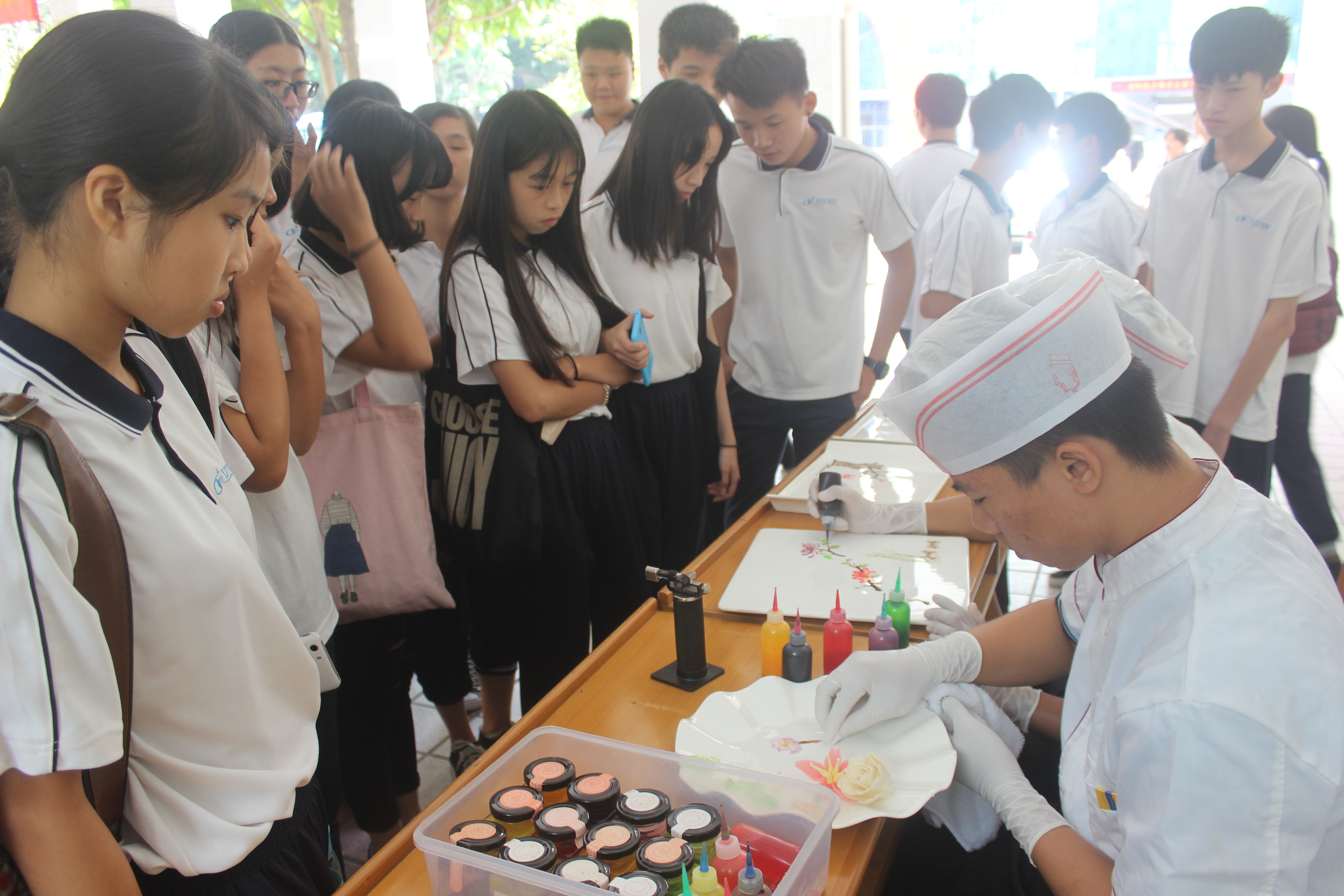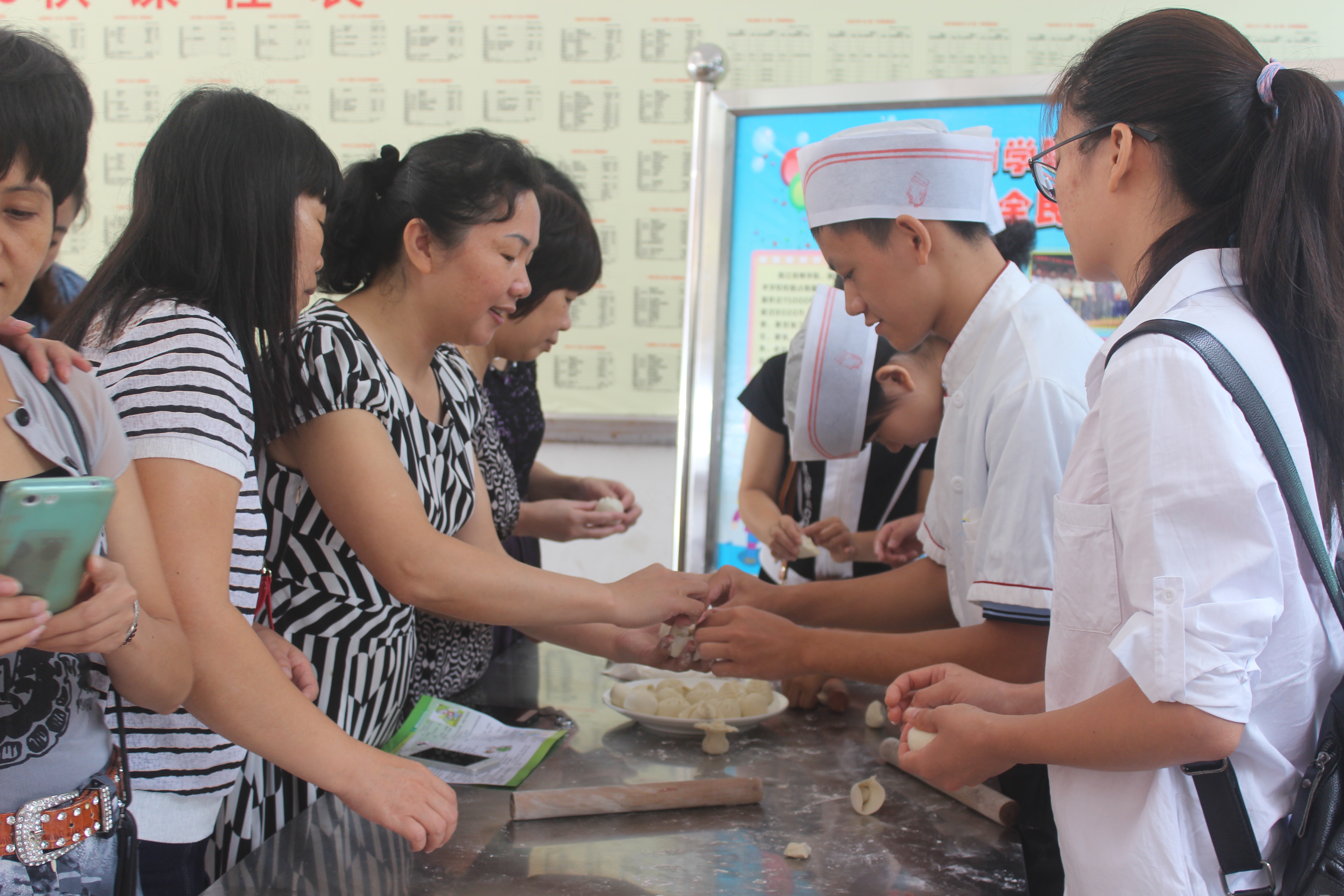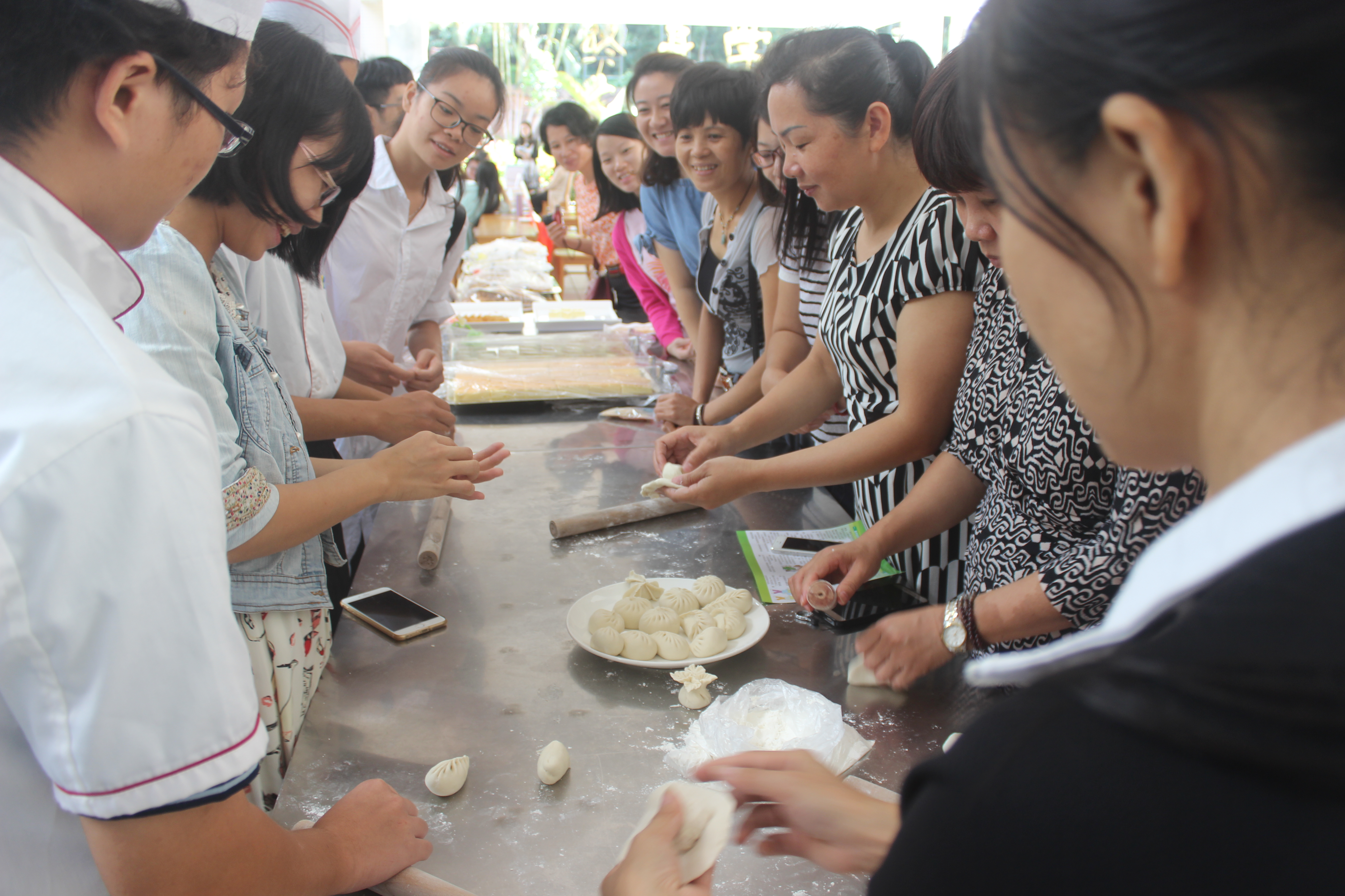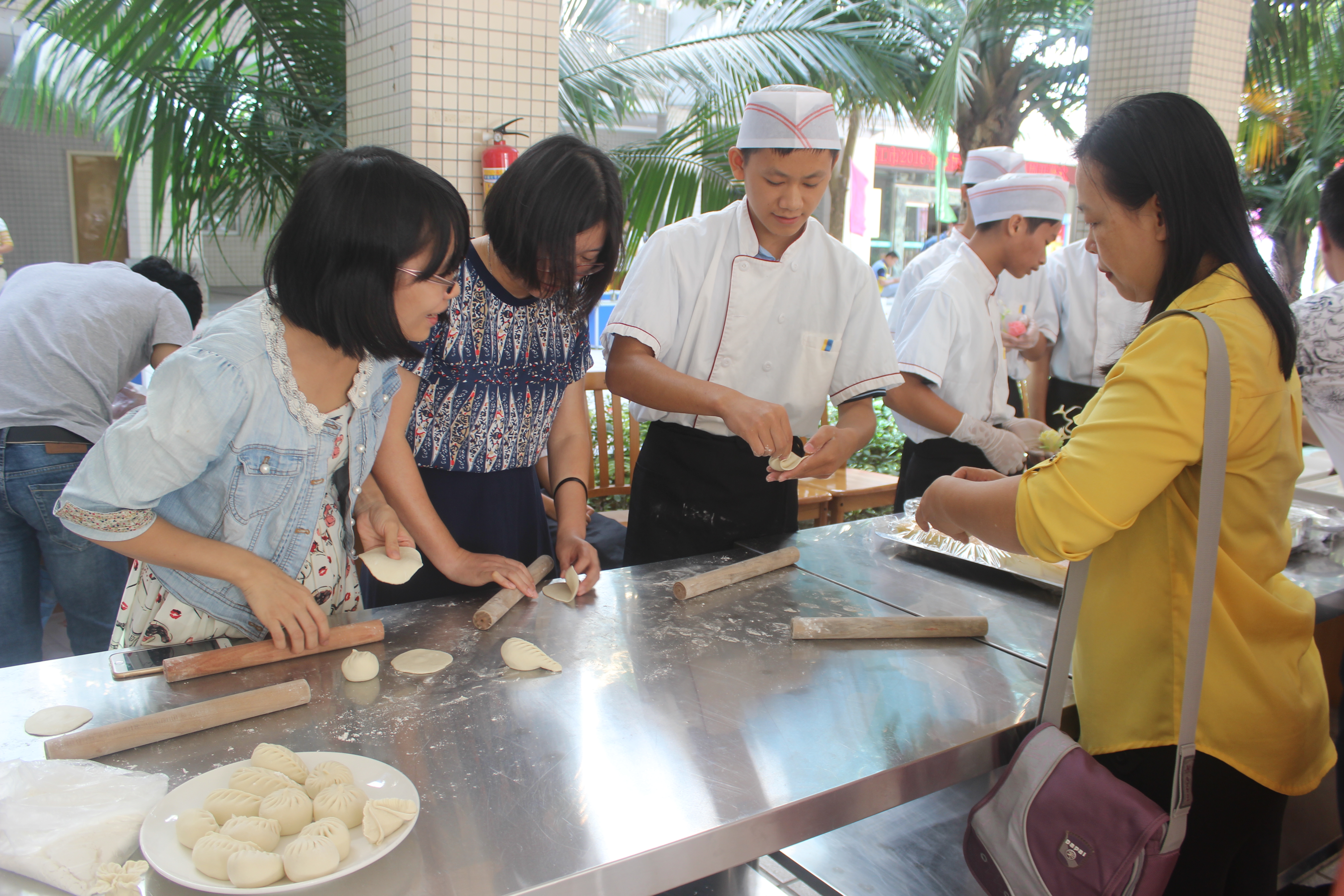 作为一所专门传授、培训技术技能的学校,我校派出了由烹饪专业师生组成的小组,现场演示、传授点心制作的流程和方法。在现场,我校烹饪专业的师生制作的点心、蛋糕及用果酱、巧克力酱等材料绘制的花鸟图案,吸引了大批市民的围观、拍照,有些市民还围着烹饪专业的师生向他们学习饺子、面包、蛋糕、糕点等点心的制作方法,而烹饪专业的师生们也很乐意将技术传授给市民,甚至手把手地教他们制作。