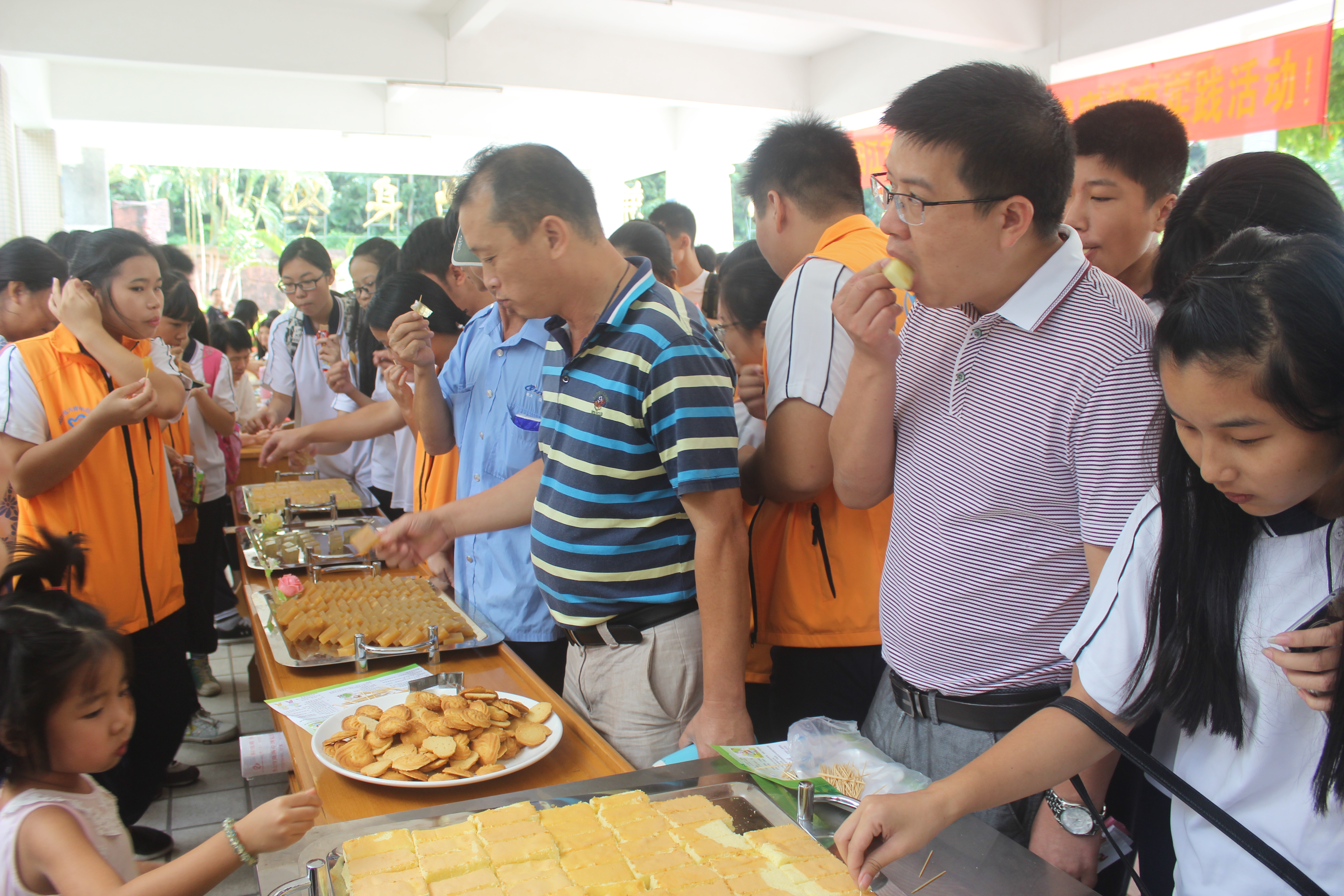 (图为市民围观学习点心制作方式,我校烹饪专业学生手把手教授)