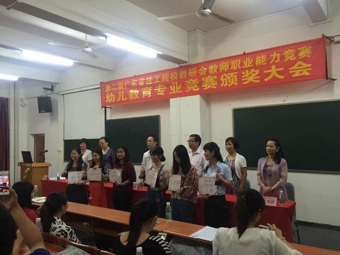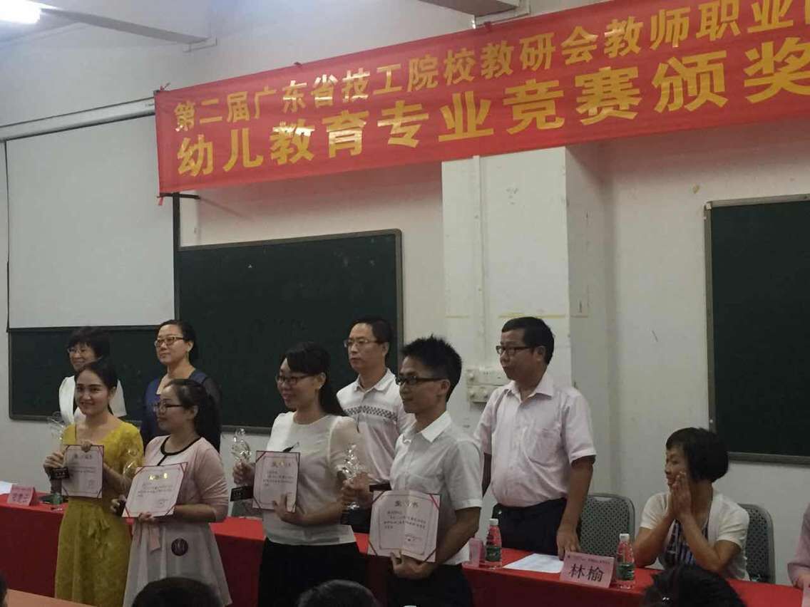 在10月22日举行的第二届广东省技工院校教研会(学前教育专业)教师职业能力竞赛中,我校教师表现出色,喜获佳绩,其中林文雅老师获得个人二等奖,车晶晶、冯晶两位老师分别获得个人三等奖,我校获得团体二等奖。